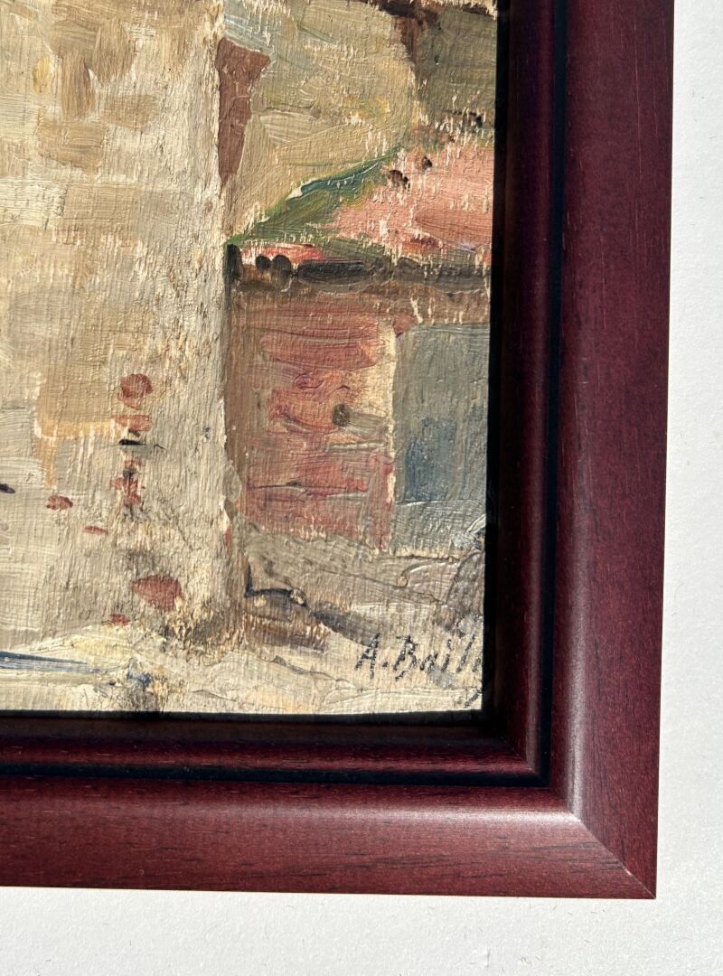 21 ESTIMATION: 30 / 50 € Alexandre BAILLY (1866-1947) La Barbacane, Cahors Huile sur panneau signée en bas à droite, datée 1910 et localisée, cachet de la vente d’atelier de 2017 au dos 27 x 218.5 cm