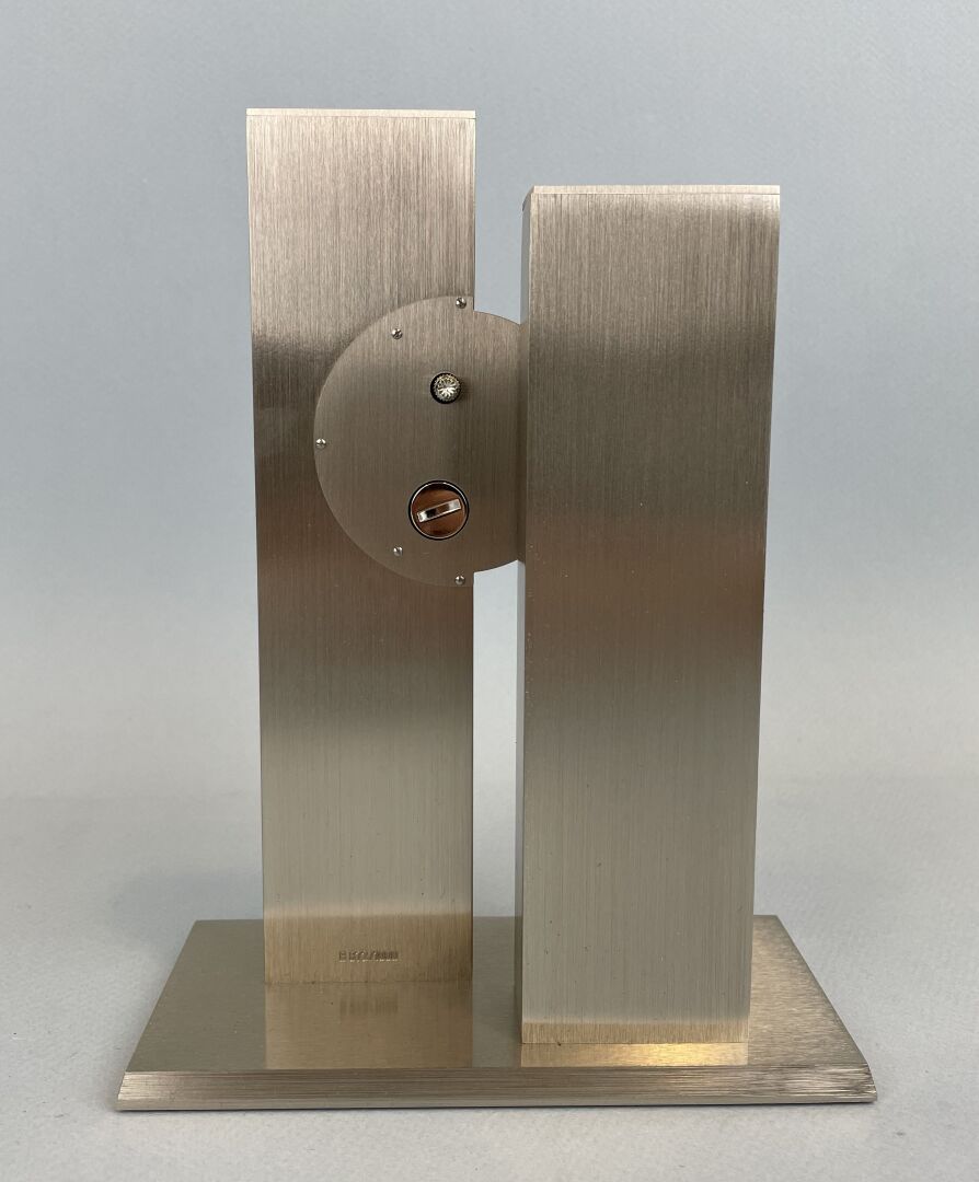 116 ESTIMATION: 50 / 80 € Michel FLEURY (1946) Horloge Nycthémérale Inox brossé, mouvement à quartz Exemplaire signé et numéroté B 872 / 1000 pour Azygos Editeur