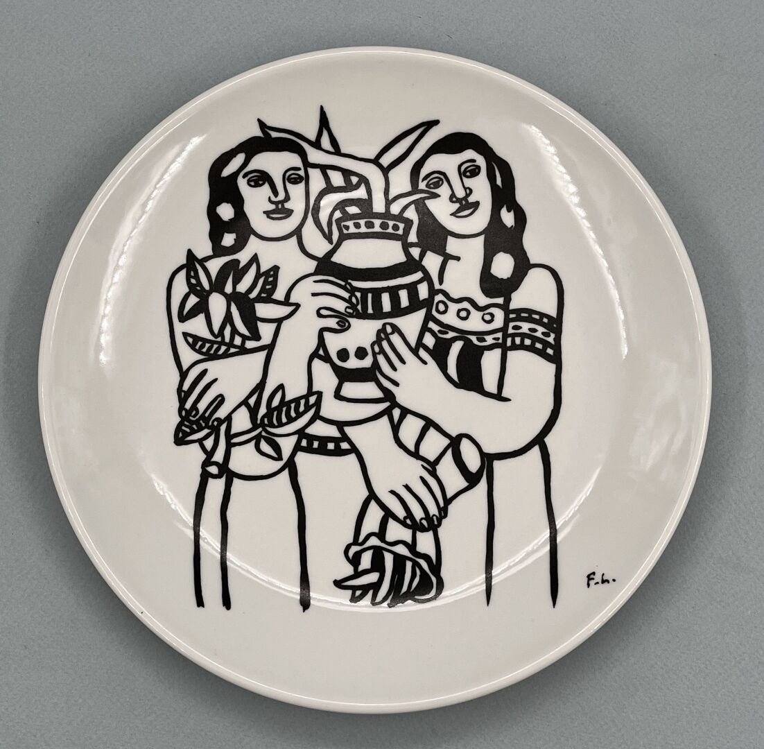 75 ESTIMATION: 60 / 80 € Fernand LEGER d’après – Éditions S.E.A.L. Exclusivité Musée F. Leger à Biot Assiette en faïence blanche à décor sérigraphié noir D : 24 cm