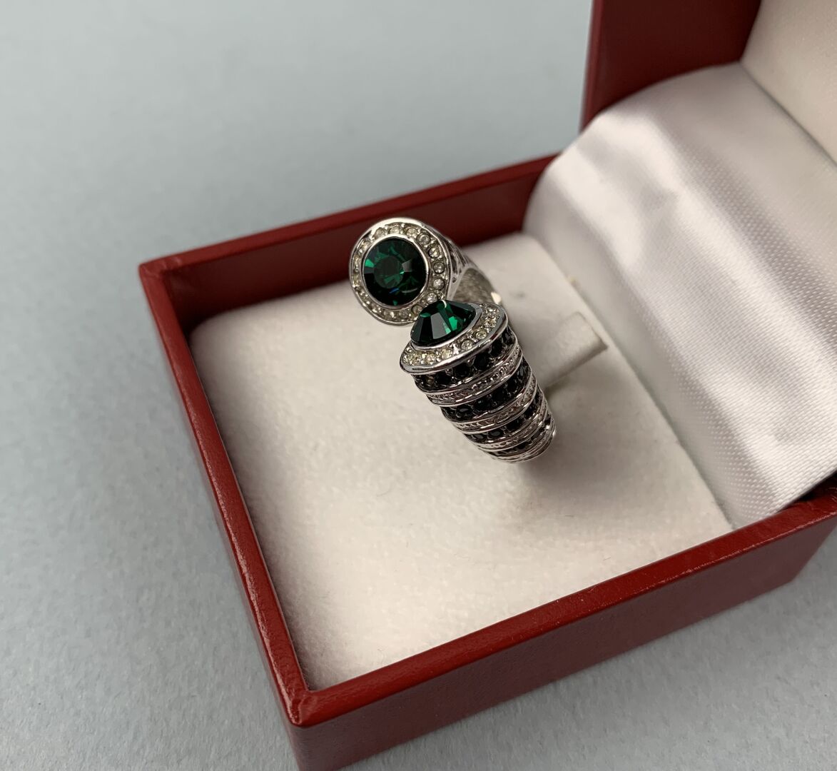 Bague Comme Lucie en métal argenté sertie de pierres vertes et de strass noirs