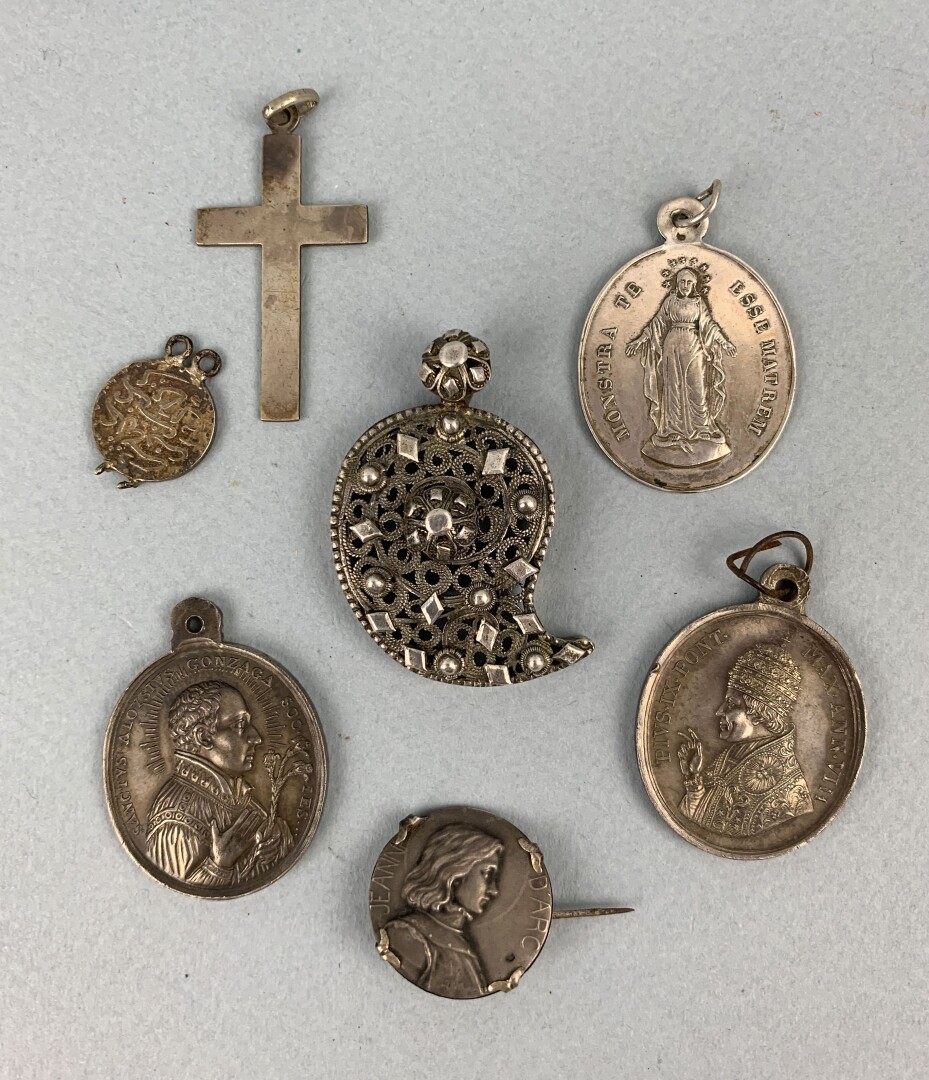 82 RÉSULTAT: 20 € ESTIMATION: 20 / 30 € Médaille en argent à thème religieux, Jeanne d’Arc, Nord Africain Poids : 52,2 g.