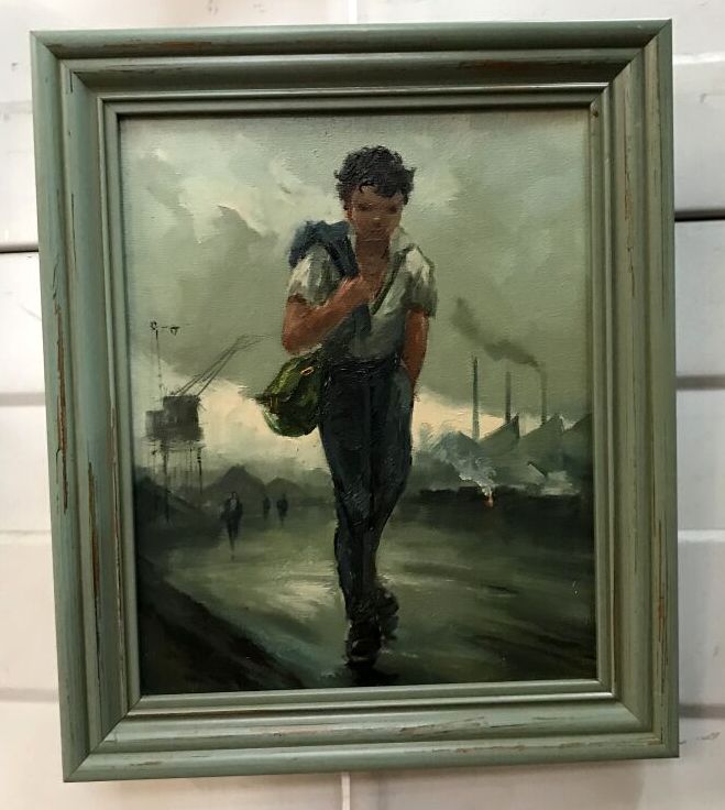 Ensemble de deux huiles sur toile, l’une représentant un jeune homme, l’autre un paysage