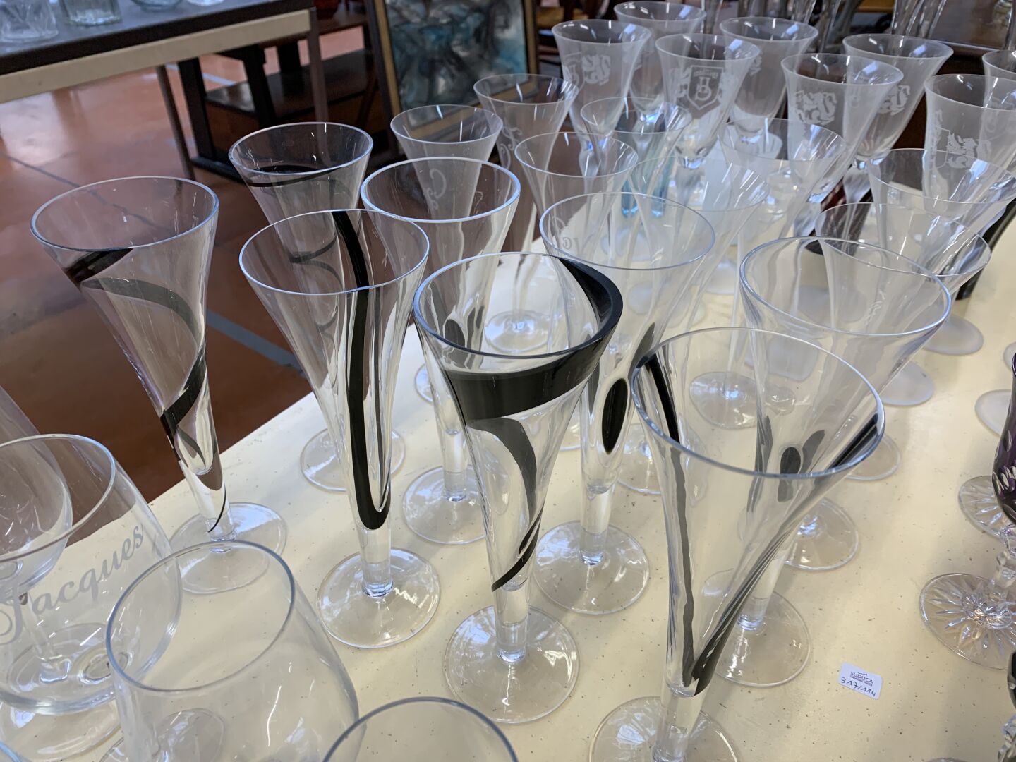 – 8 flutes cornet à décor d’incrustation de verre noir