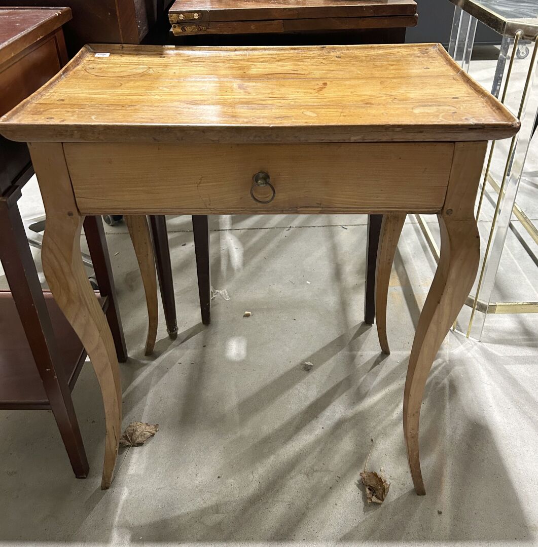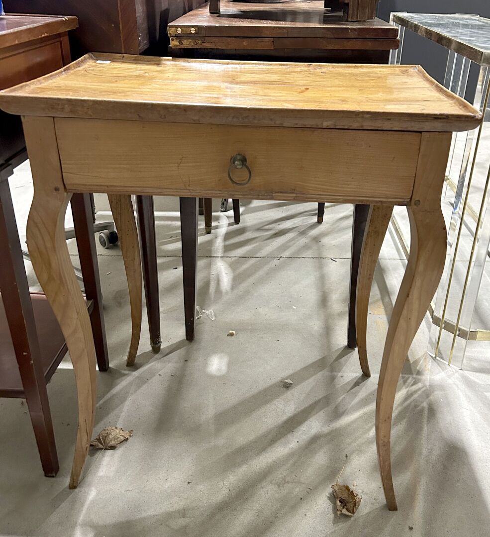 Petite table d’appoint ouvrant à un tiroir en ceinture