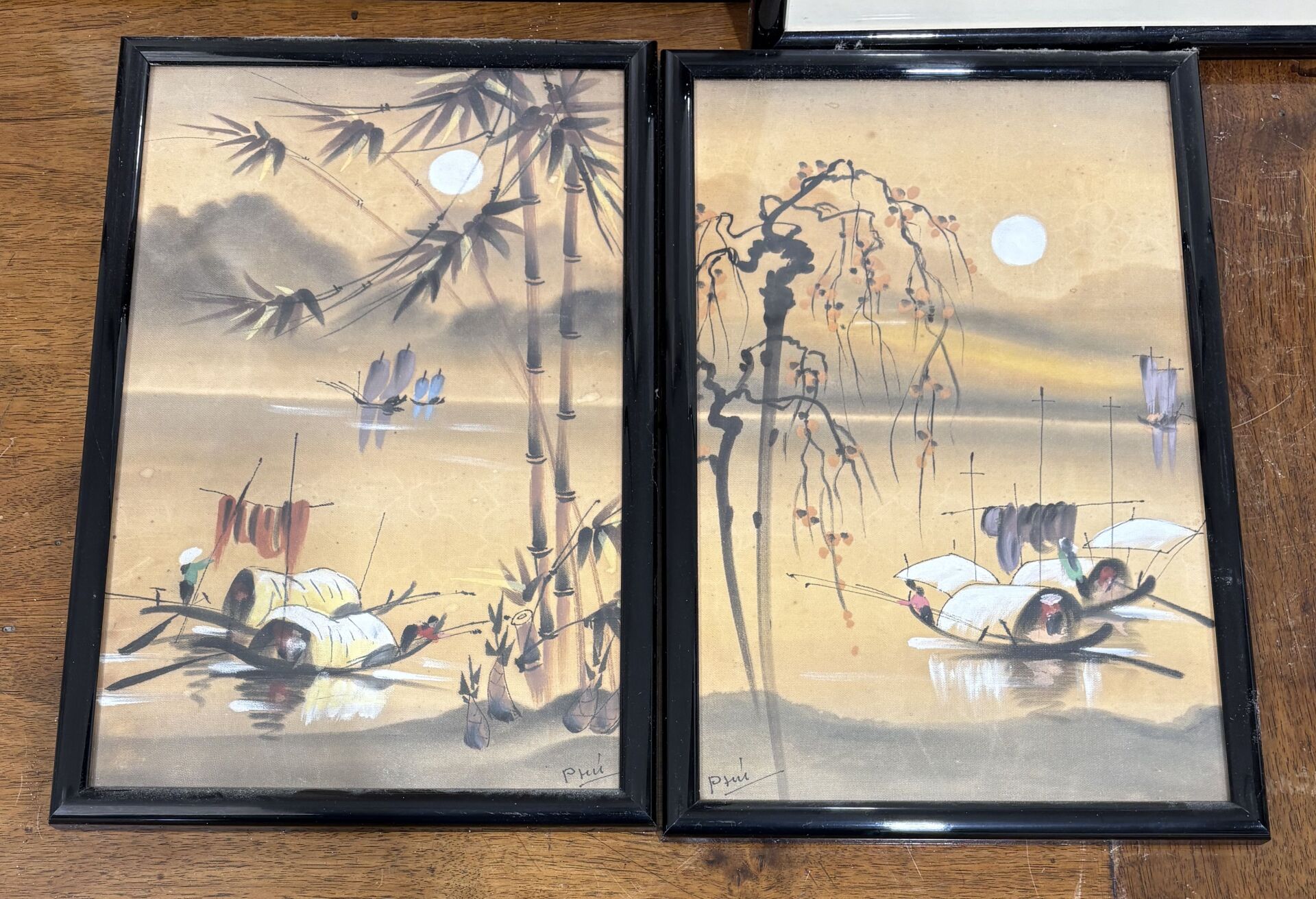Paire de peintures sur soie