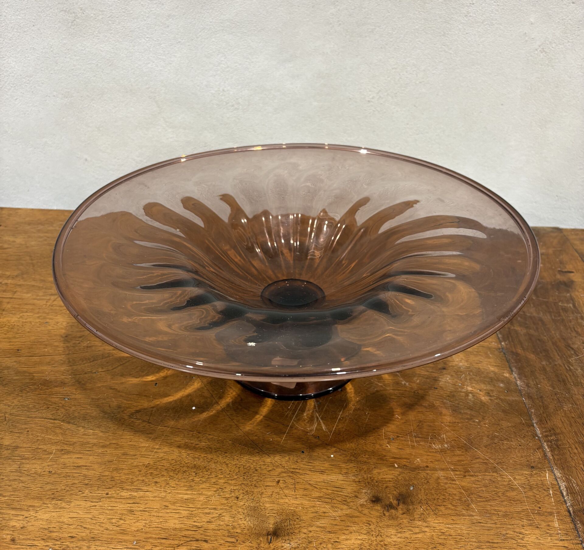 Coupe sur pied en verre côtelé violet