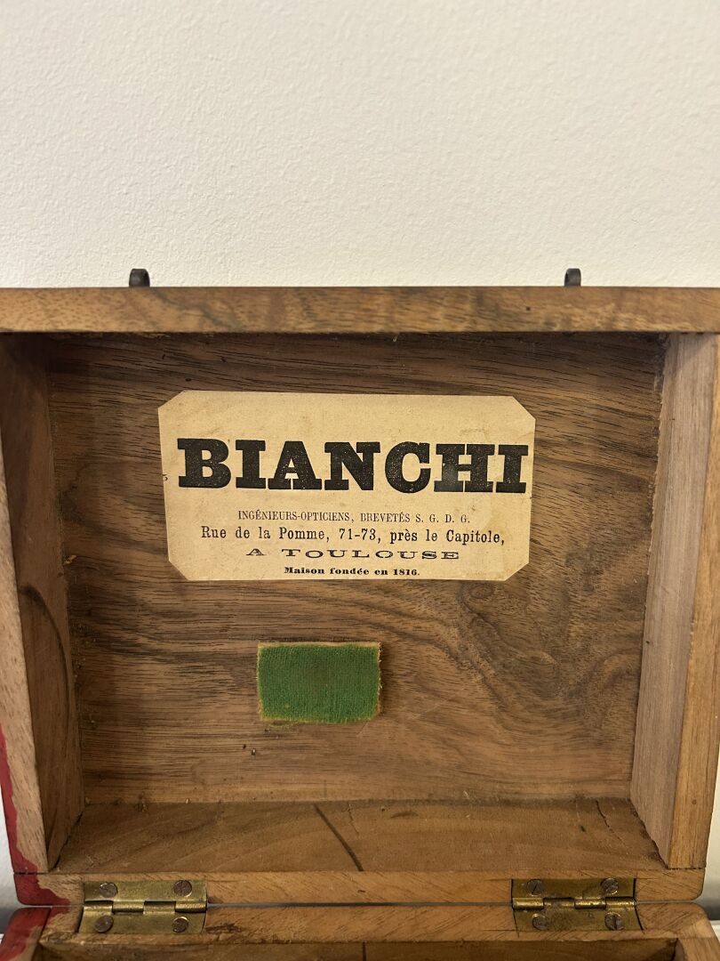 308 ESTIMATION: 80 / 120 € BIANCHI à TOULOUSE – Boussole de Marine en laiton, base mobile, graduée, articulée Dans un coffret de voyage