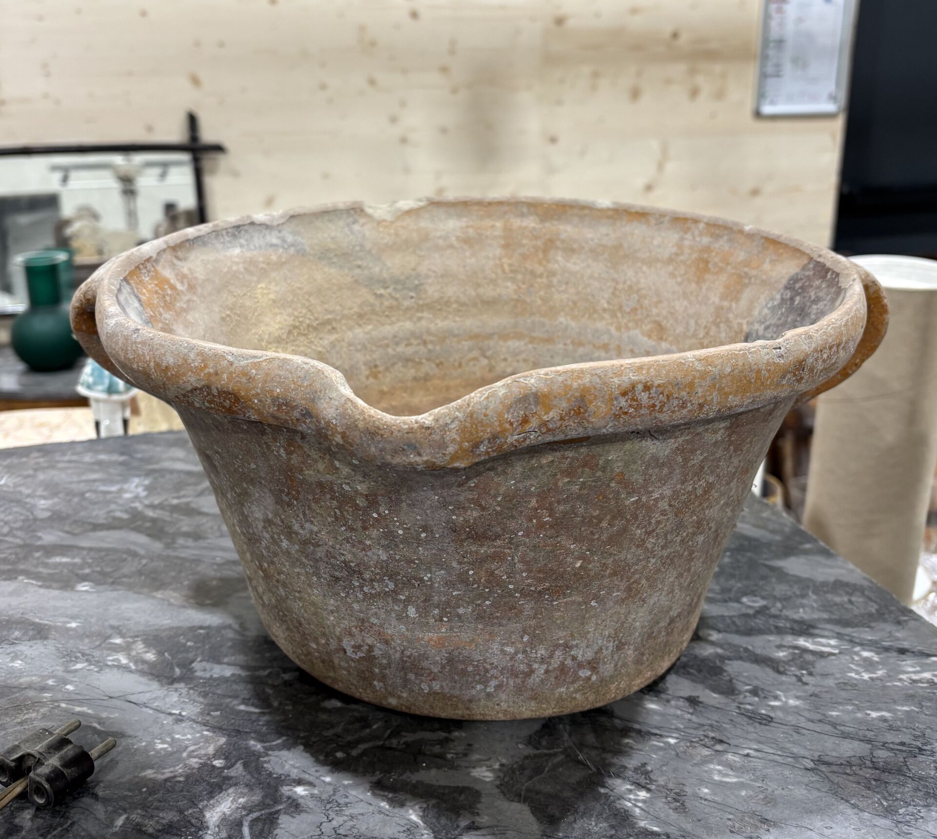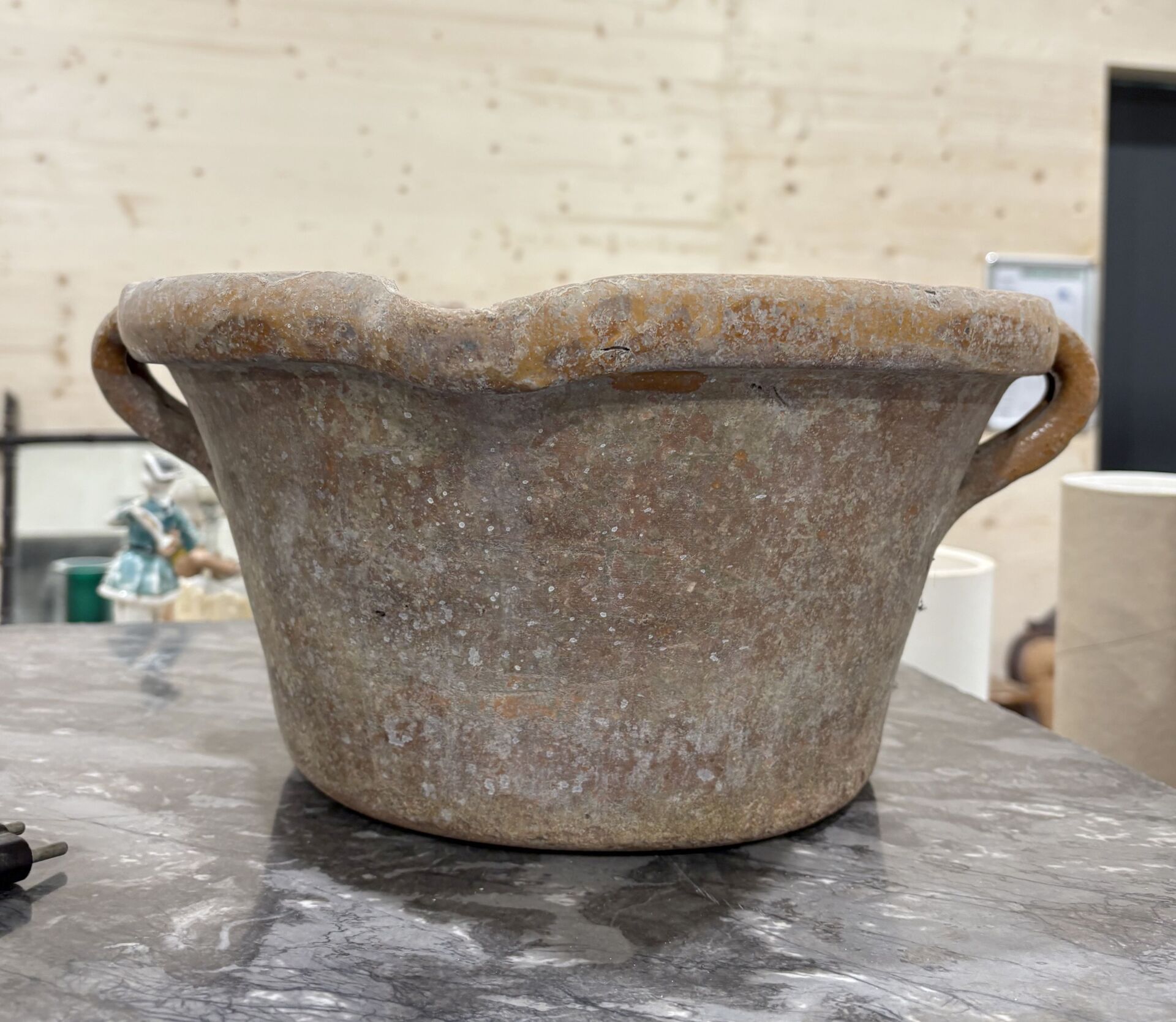 Pot en terre cuite vernissée à deux anses et un bec verseur