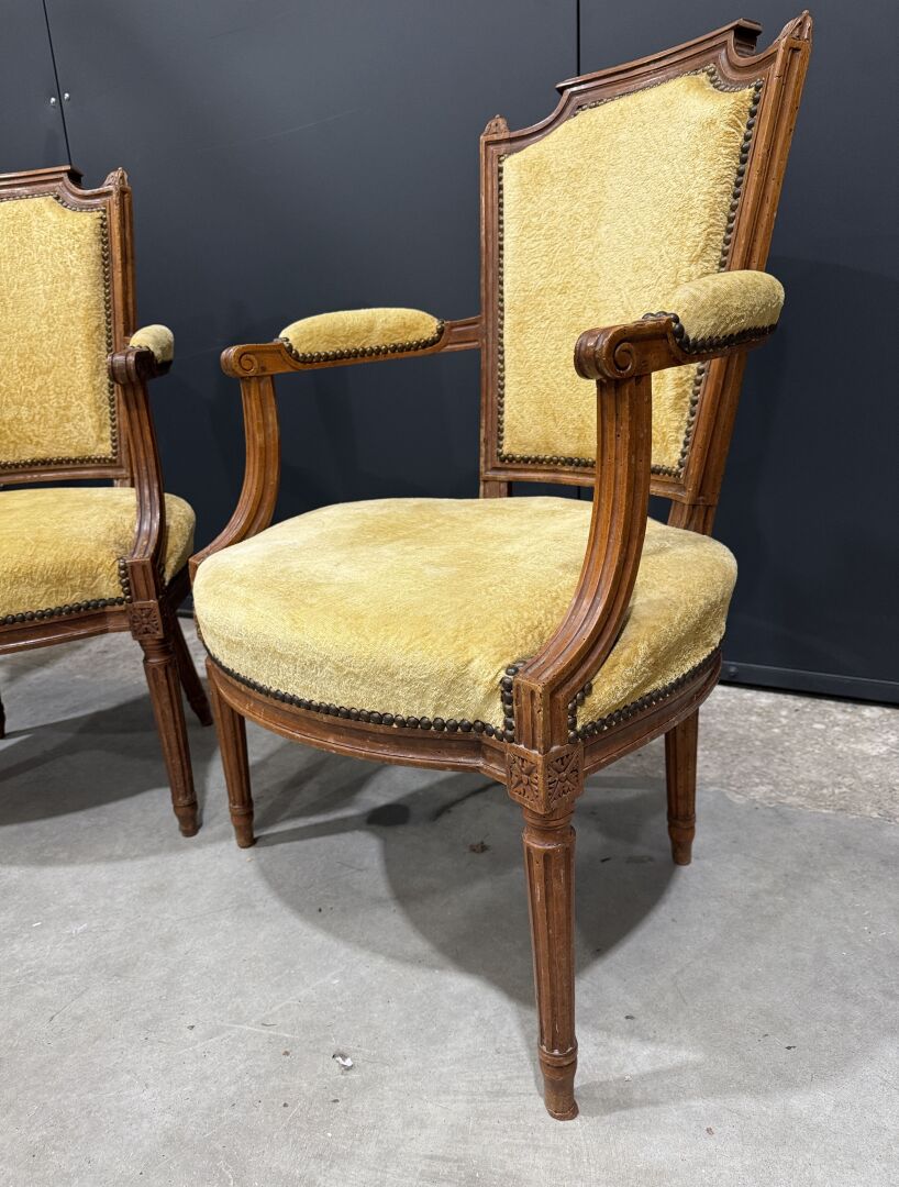 Paire de fauteuils en bois naturel mouluré et sculpté