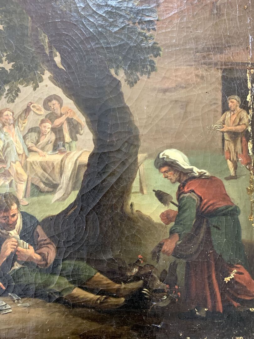 158 RÉSULTAT: 380 € ESTIMATION: 300 / 500 € Ecole Italienne XIX° Scene de vie paysane Huile sur toile, sauts de matières, 61 x 73 cm