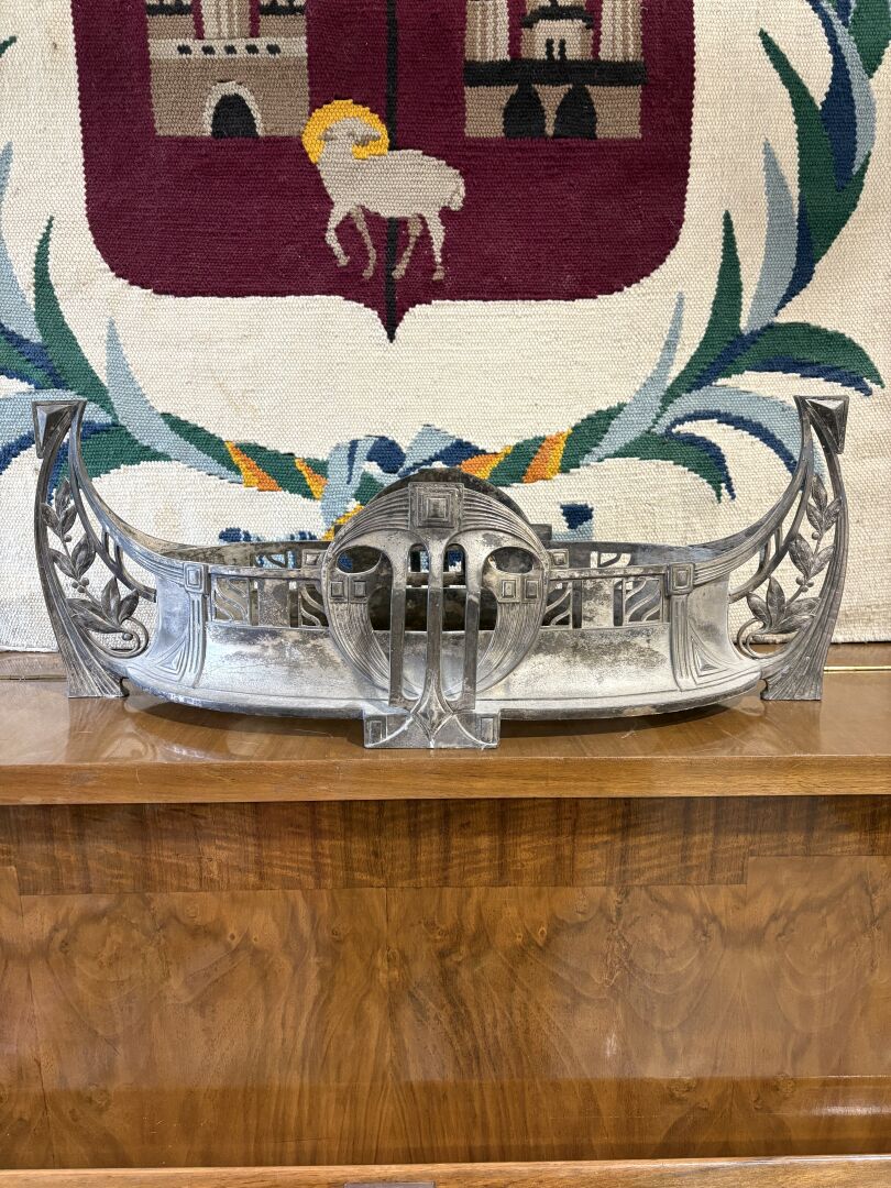 Structure de jardinière en métal argenté à décor 1900 H : 22 - L : 60 cm