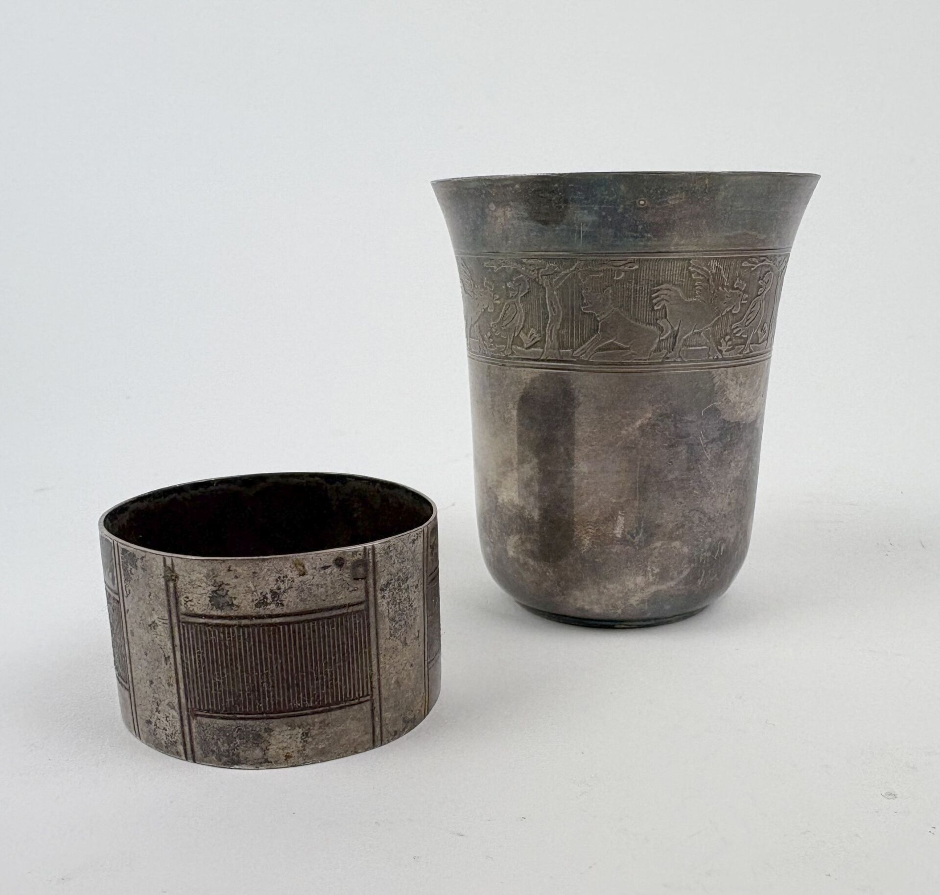 Timbale en argent Minerve (925 millièmes) à motif Art Déco On y joint un rond de serviette au modèle