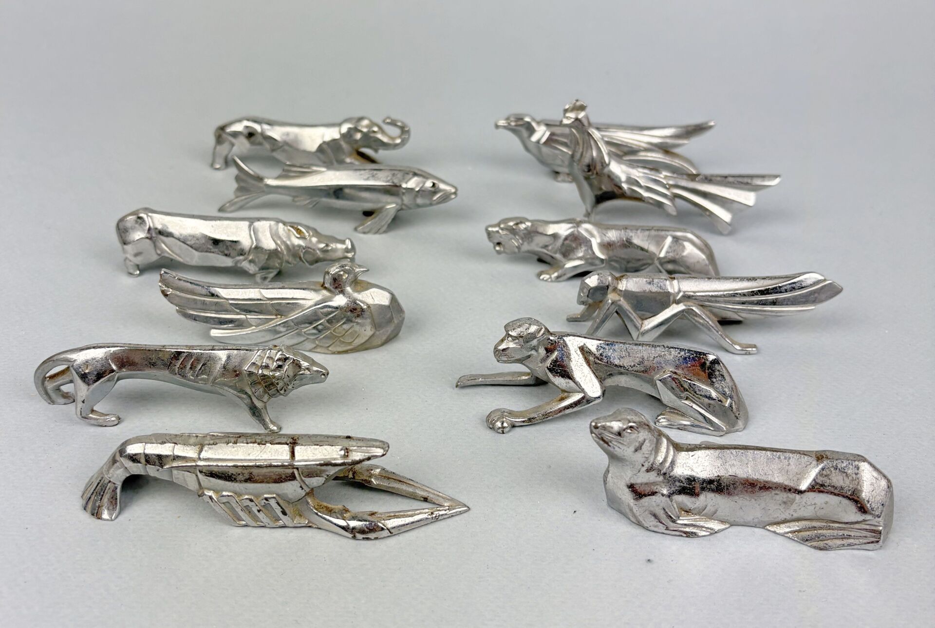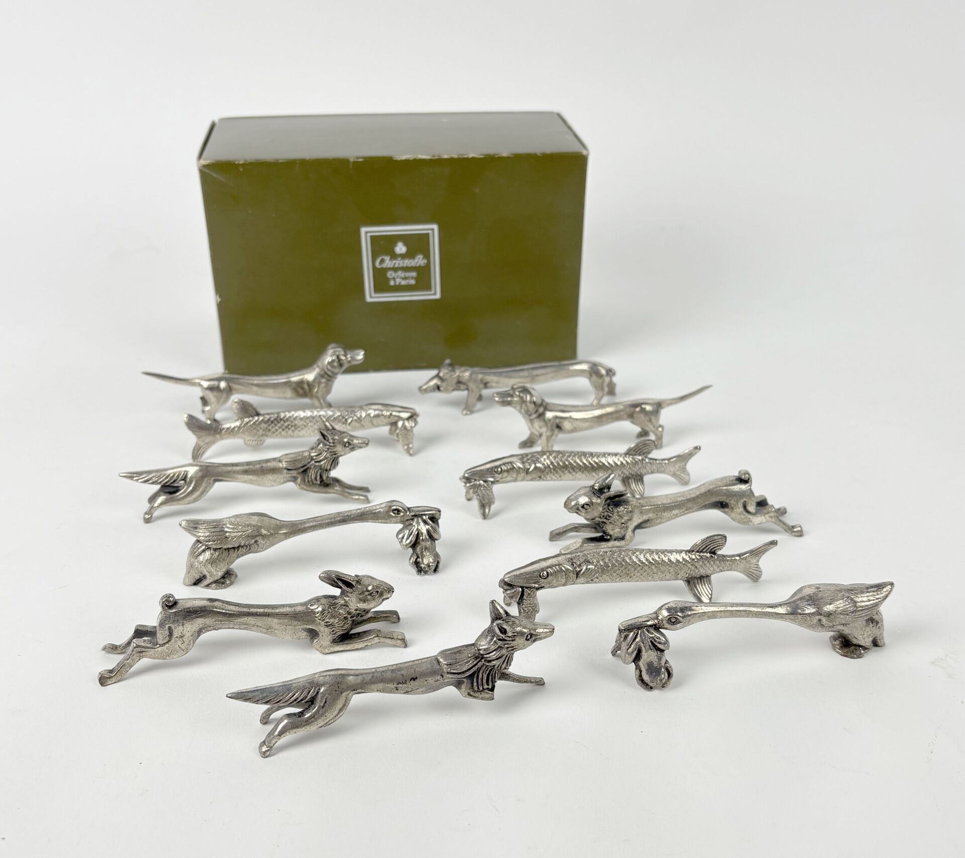 Suite de onze porte couteaux animaliers en métal argenté dans le gout de Marcel Sandoz Dans une boite Christofle