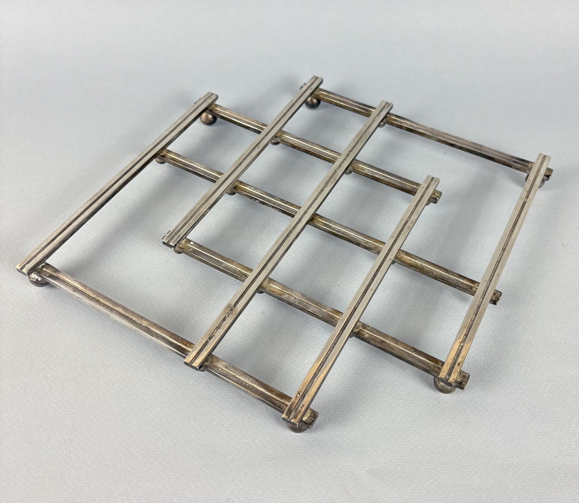 Jacques ADNET (1900-1984), dans le gout de Dessous de plat en métal argenté reposant sur dix huit pieds boule figurant deux carrés imbriqués