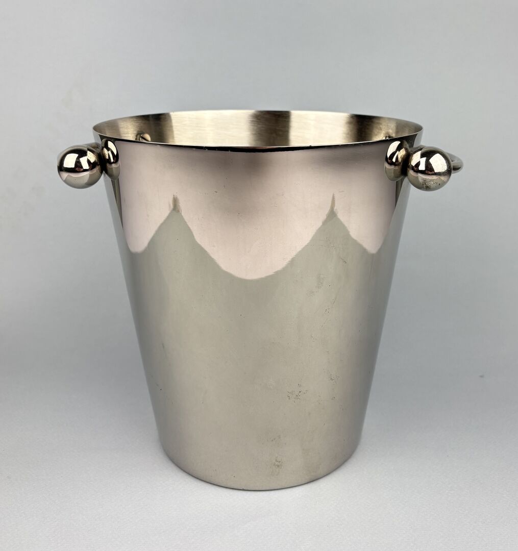 Seau à champagne en métal chromé à deux anses Travail vers 1970 H : 21 cm