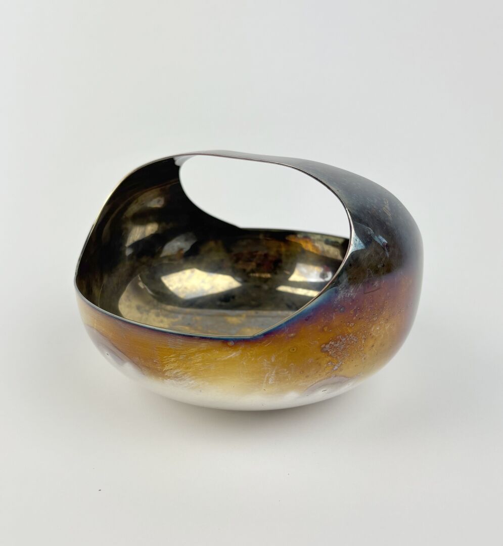 Panier en métal argenté Travail vers 1960 D : 15.2 cm