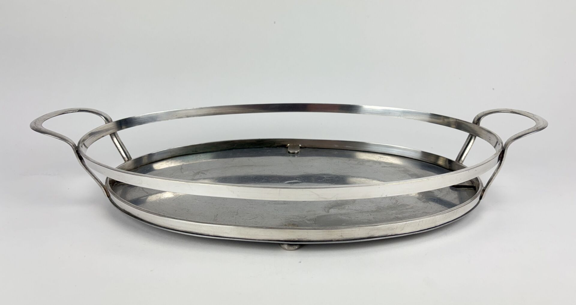 Porte plat à gratin en métal argenté à fond aluminium à deux anses Dimensions : 43.6 x 32.5 cm