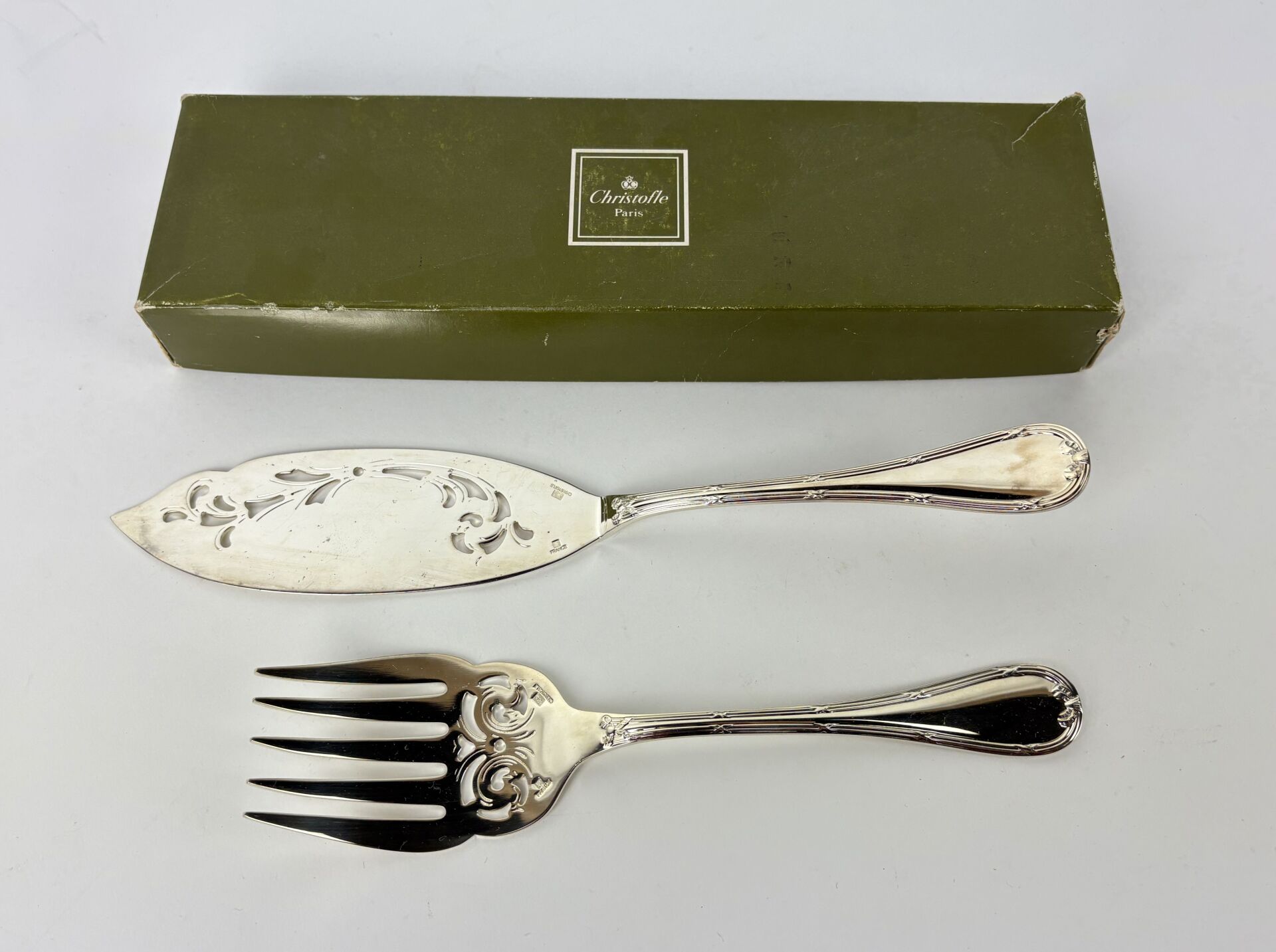 CHRISTOFLE Modèle Rubans Croisés - Couvert de service à poisson en métal argenté ajouré Dans une boite