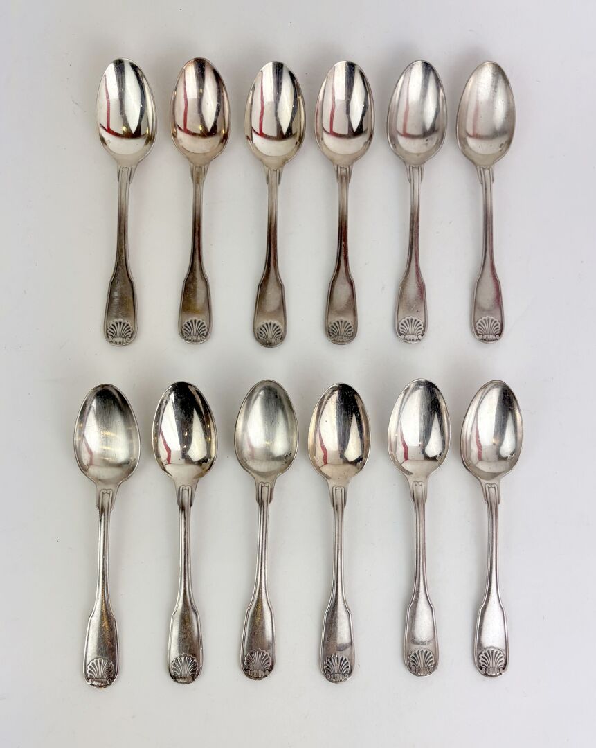 CHRISTOFLE Modèle Vendôme - Suite de 12 cuillères à glace en métal argenté