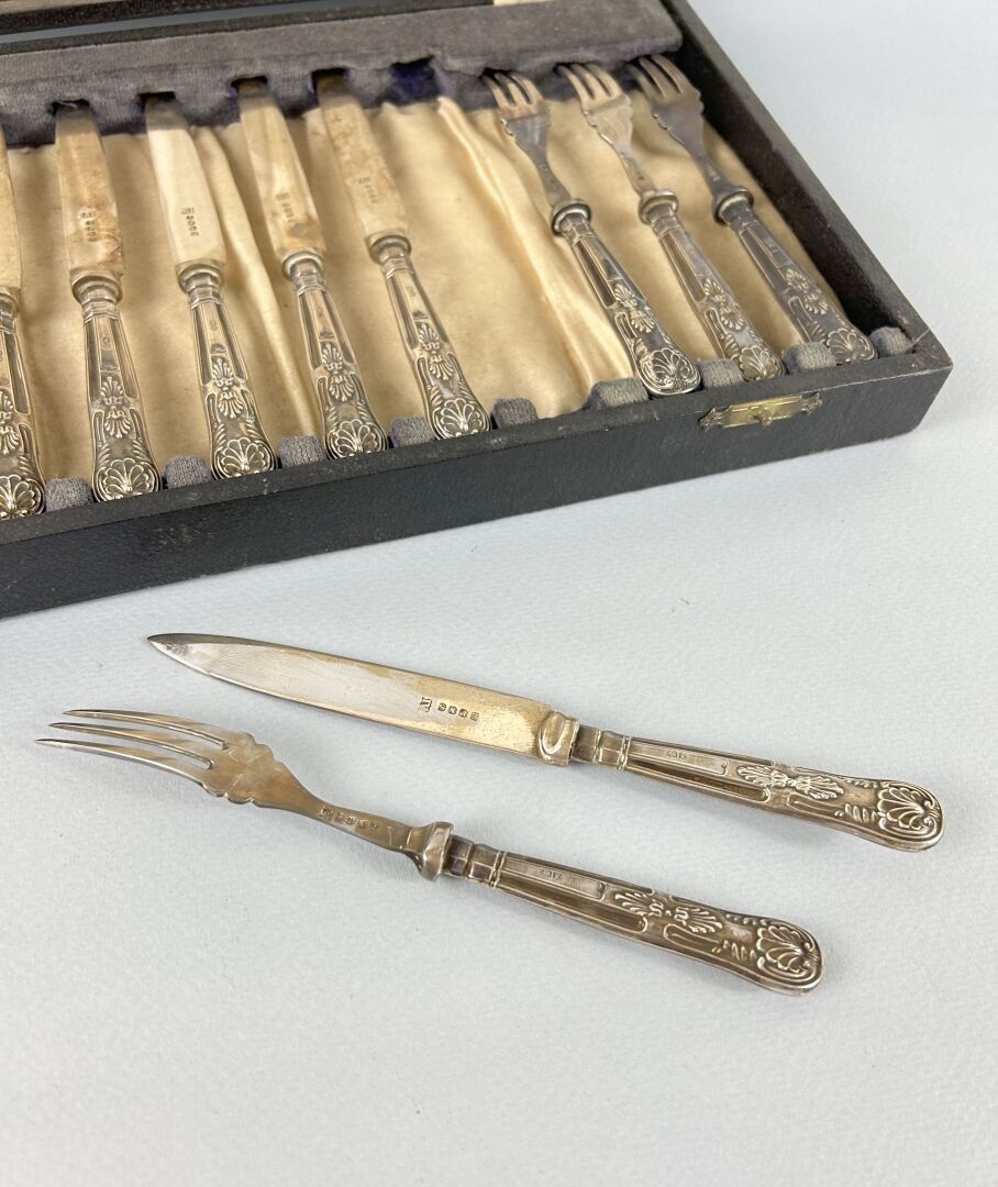 Coffret de quatre couverts à fruit en argent anglais à riche décor de coquilles Poids Brut : 257 g