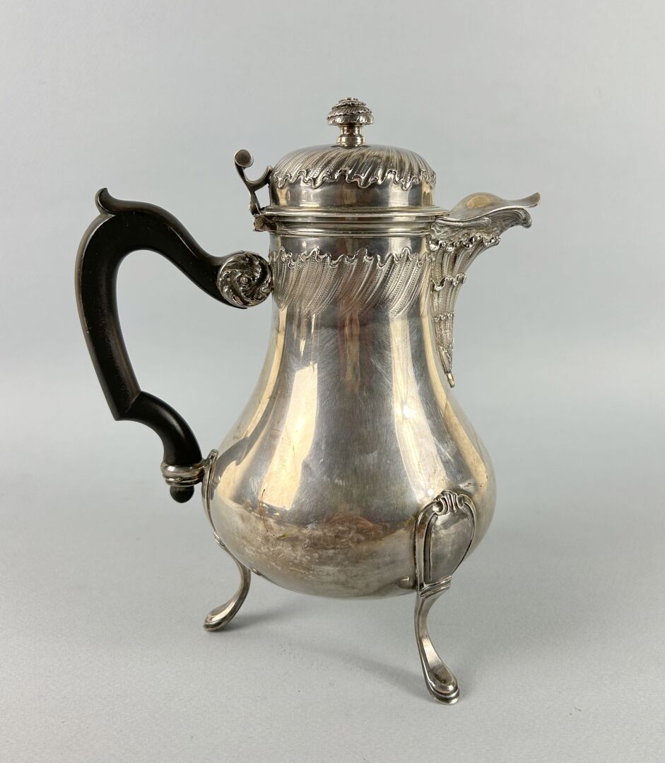 CARDEILHAC Verseuse en argent (925 millièmes), poinçon Minerve à décor de style rocaille, la prise en bois Chocs Poids brut : 514 g.