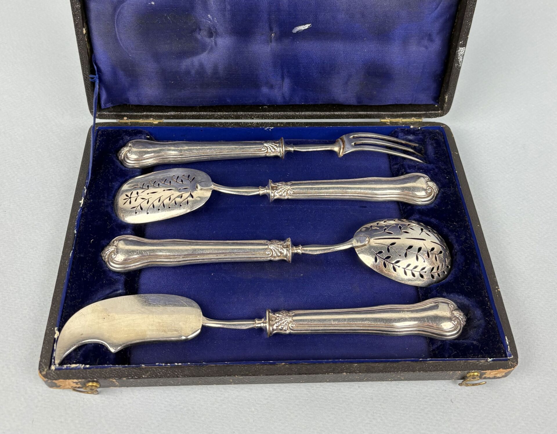 Nécessaire à hors d'oeuvre en argent et argent fourré, le manche violoné à décor de coquille et filet Poids brut : 175 g