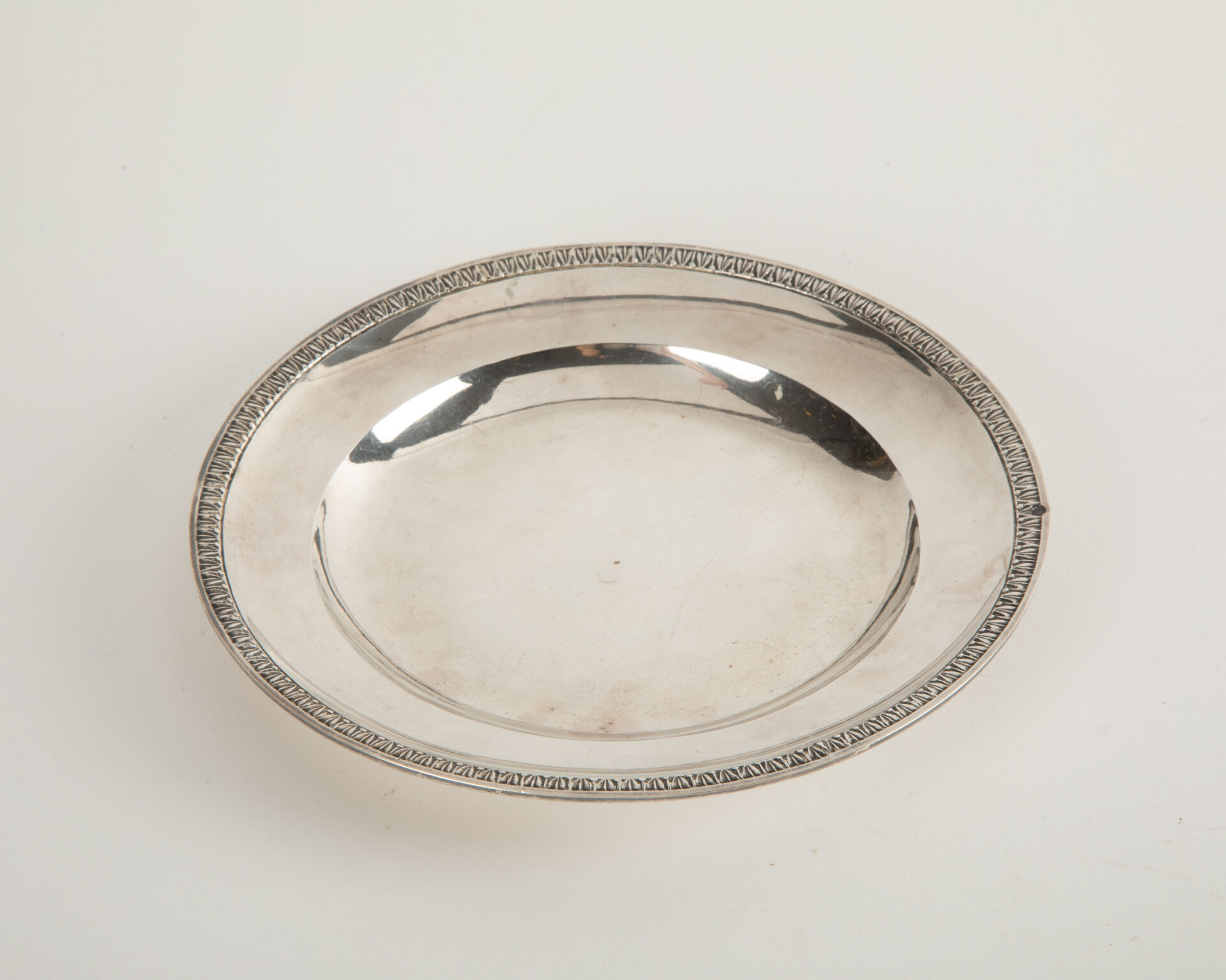 Petite coupelle en argent (925 millièmes), poinçon vieillard à décor de frise de palmettes Diam : 16 cm Poids : 131 g.