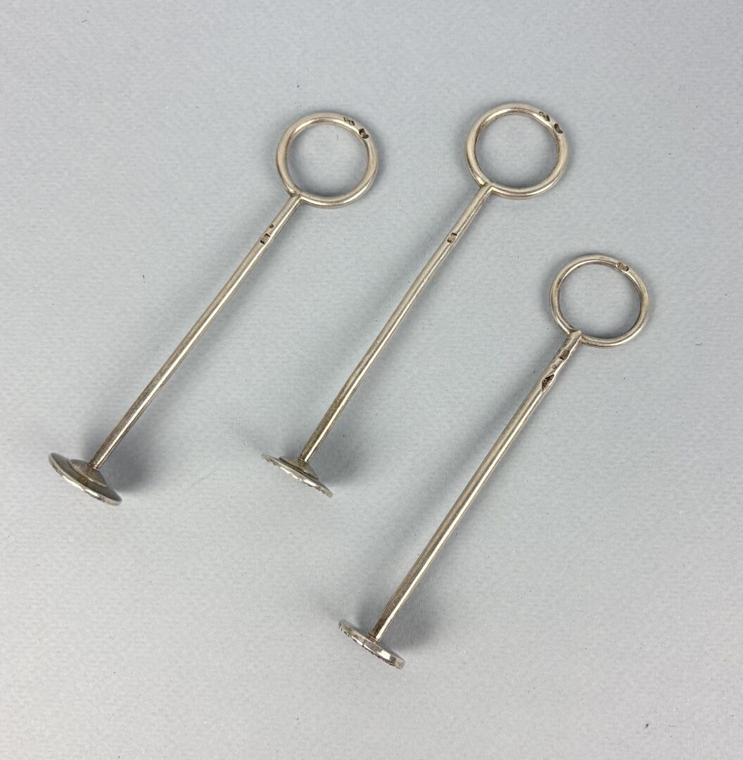 Suite de trois pilons à sucre en argent (925 millièmes), poinçon vieillard Poids : 68.5 g