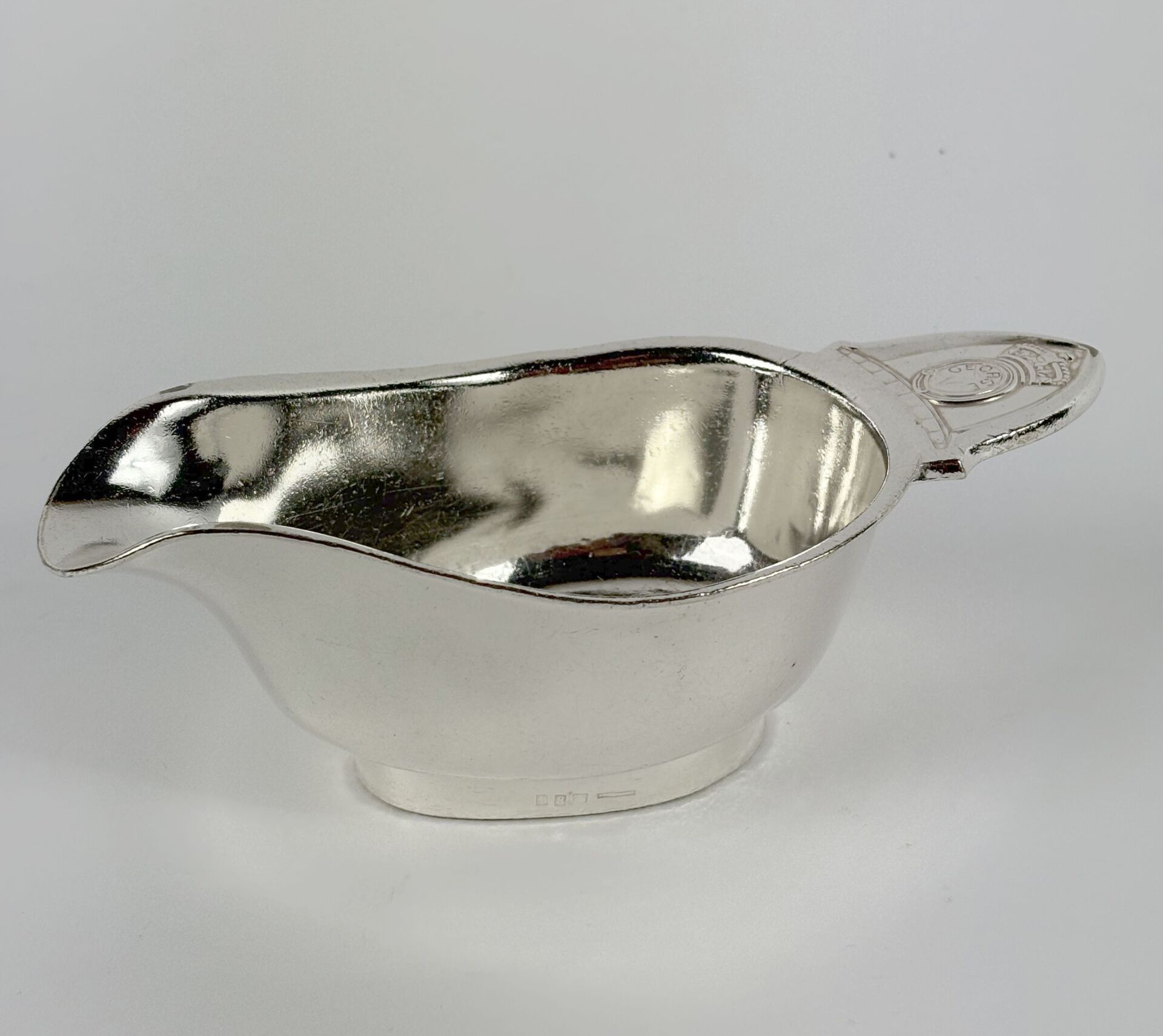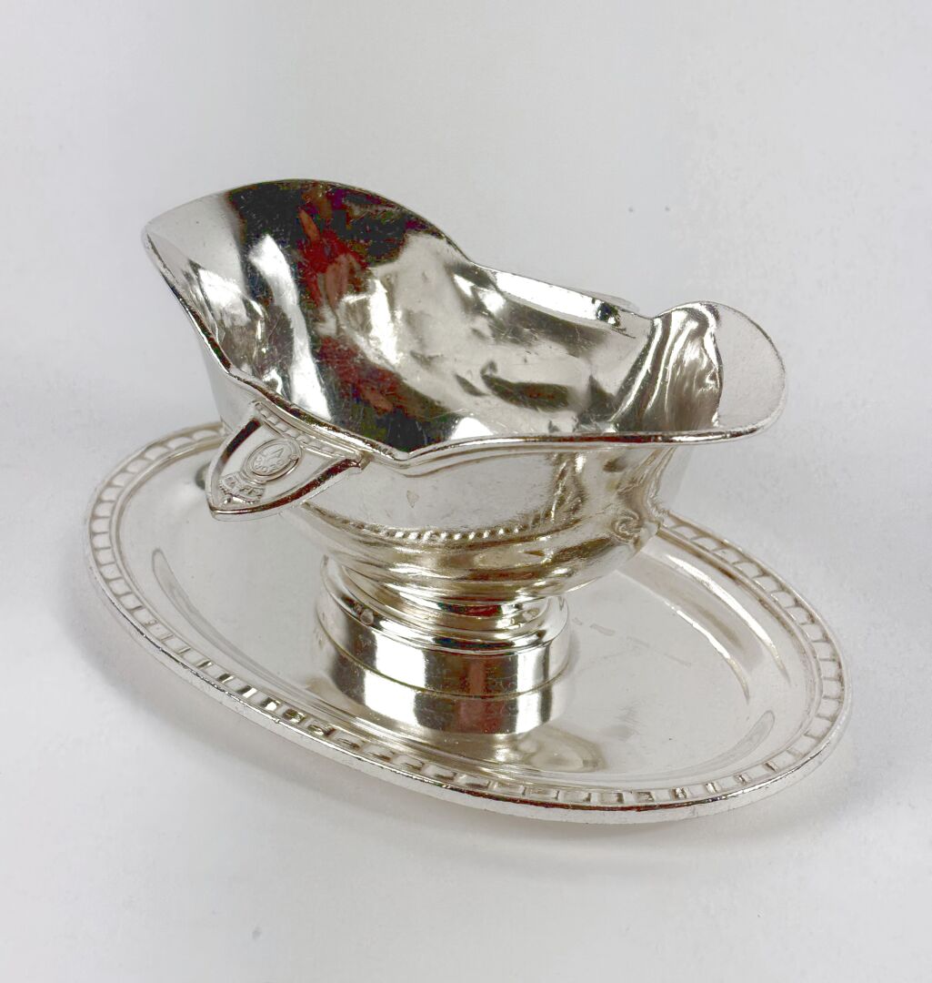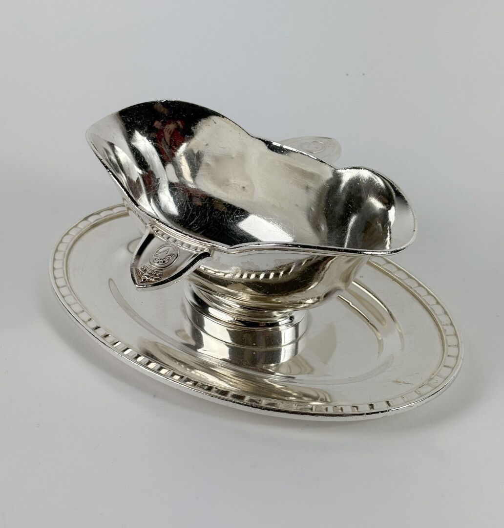 CHRISTOFLE pour l'Hotel Georges V Saucière individuelle en métal argenté frappée du blason de l'établissement Etat d'usage L : 18 cm