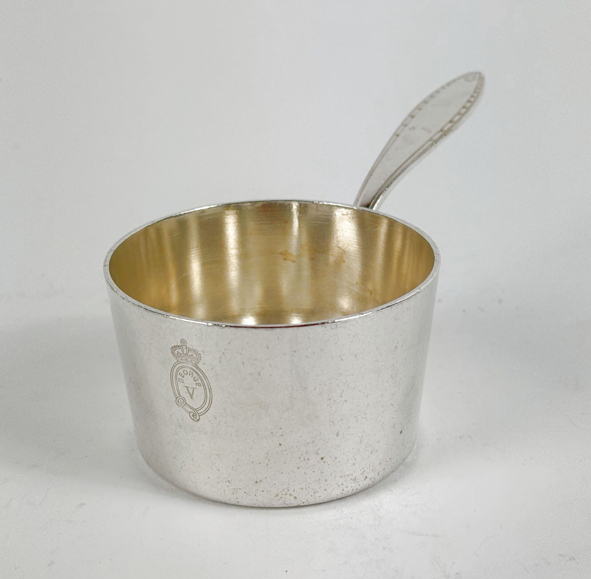 CHRISTOFLE pour l'Hotel Georges V Petite saucière en métal argenté avec son dormant amovible frappée du blason de l'établissement Etat d'usage L : 21 cm