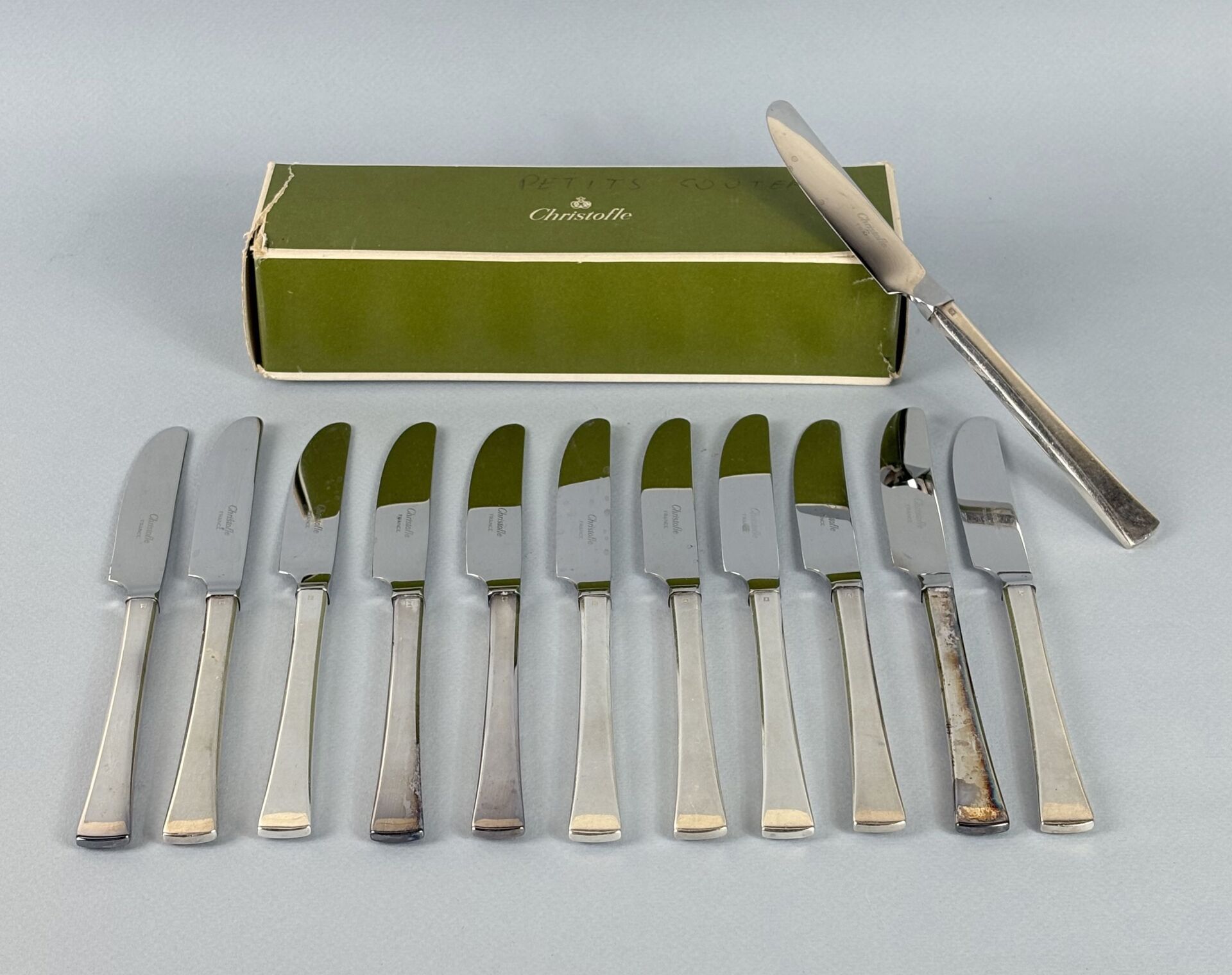 CHRISTOFLE Modèle Concorde - Suite de douze couteaux à dessert en métal argenté Dans une boite