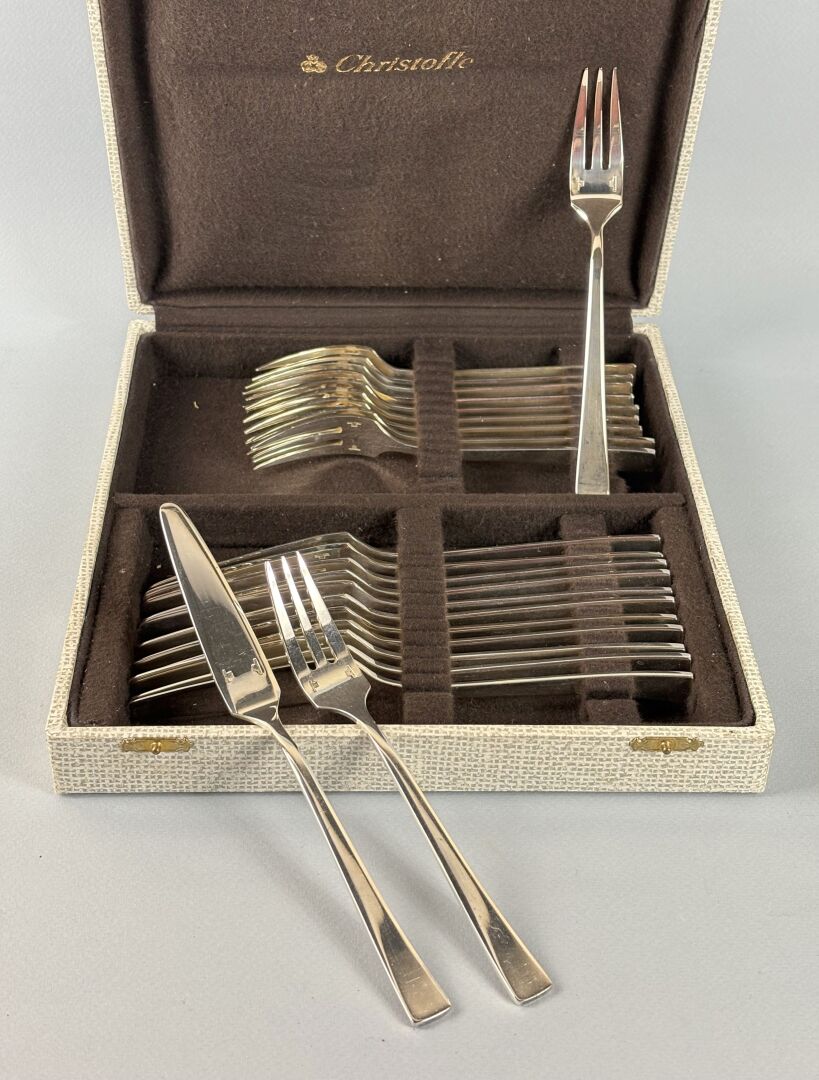 CHRISTOFLE Modèle Concorde - Suite de douze couverts à poisson en métal argenté Dans leur écrin