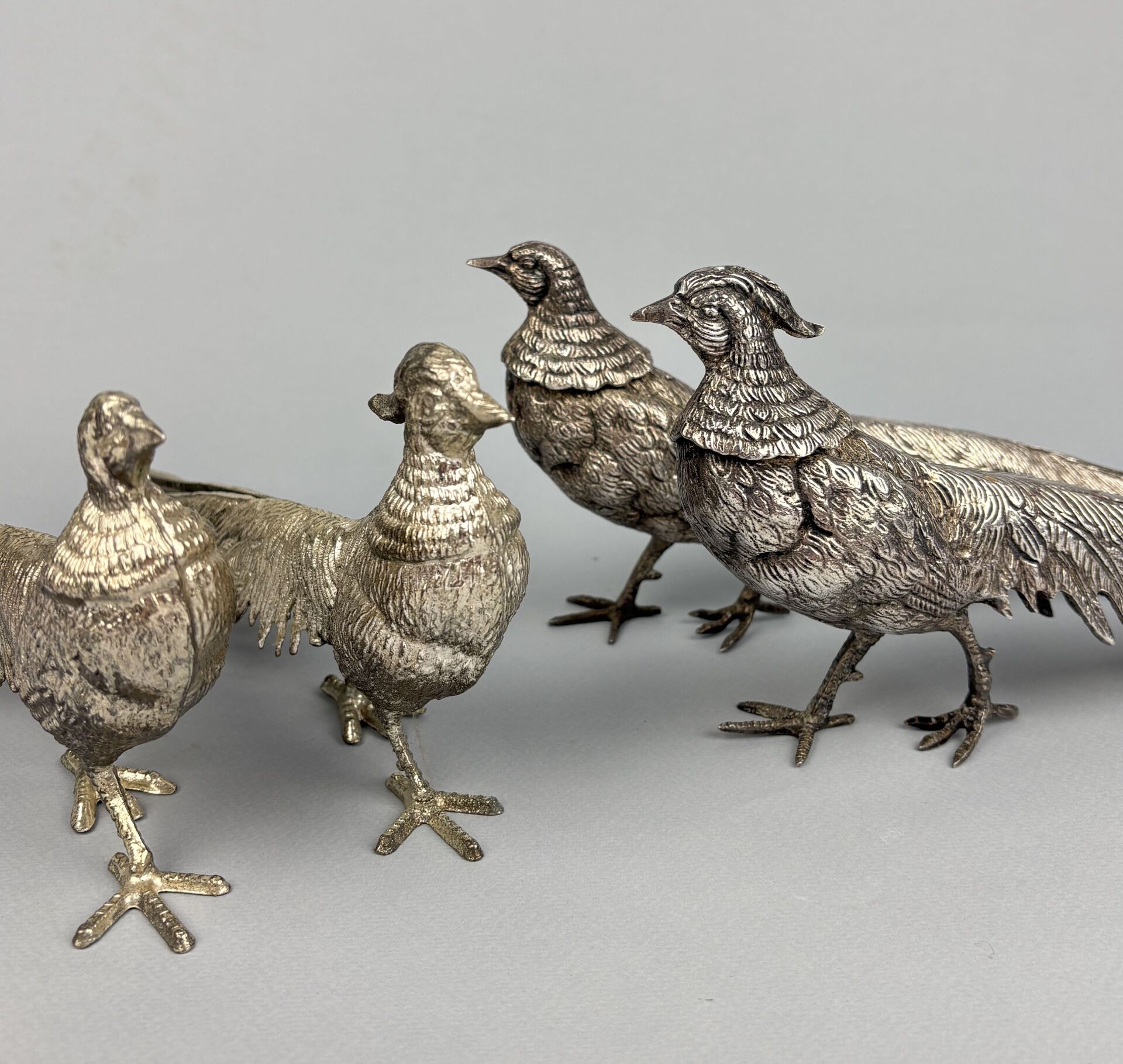 Suite de deux couples de faisans décoratifs en métal argenté L : 30 - H : 13 cm