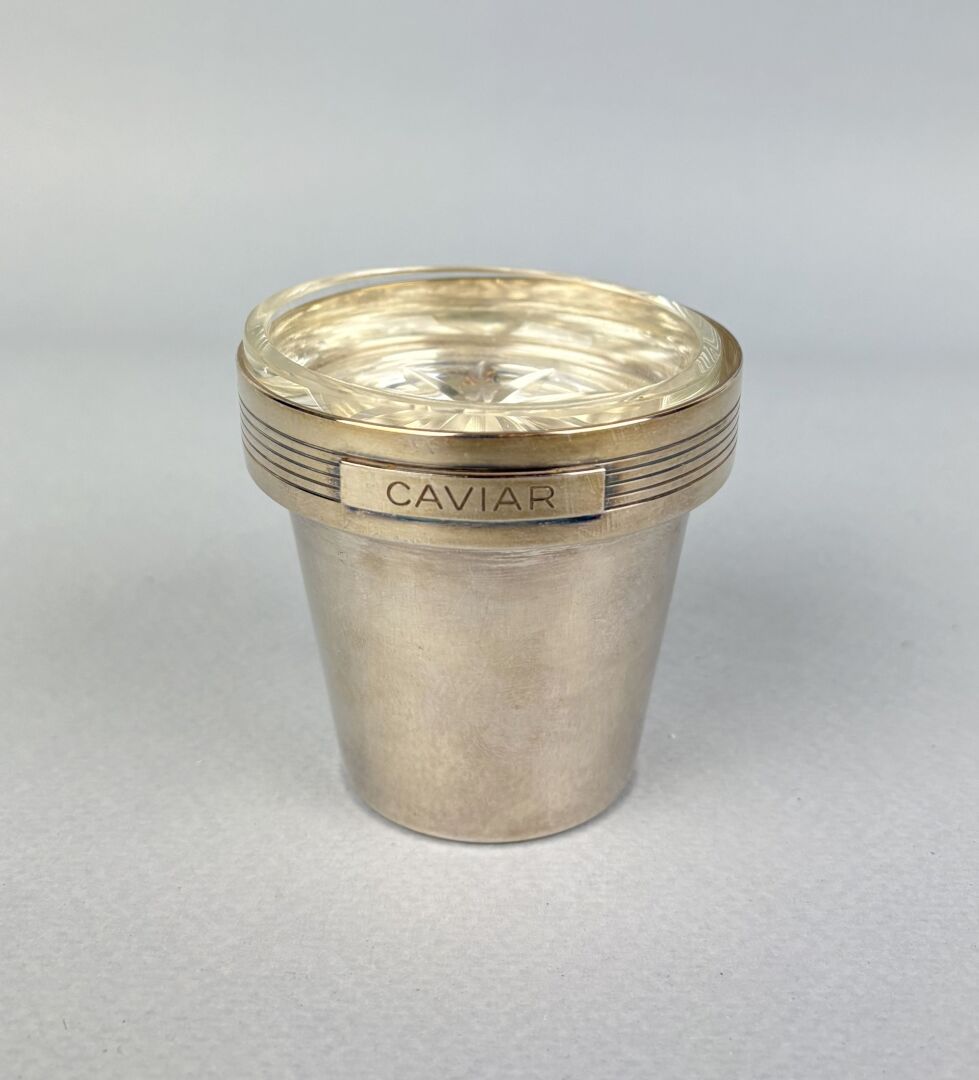 SAINT HILAIRE Petit rafraichissoir à caviar en métal argenté et cristal taillé figurant un vase de jardin H : 6.2 cm