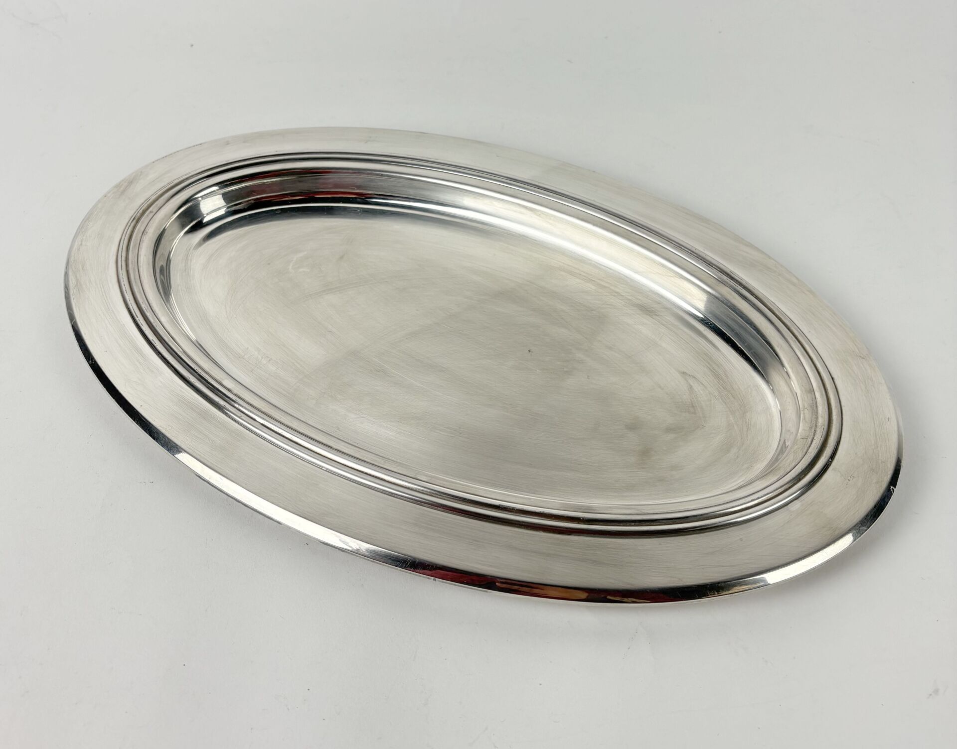 ERCUIS Plat de service ovale en métal argenté à décor de frises en bourrelets