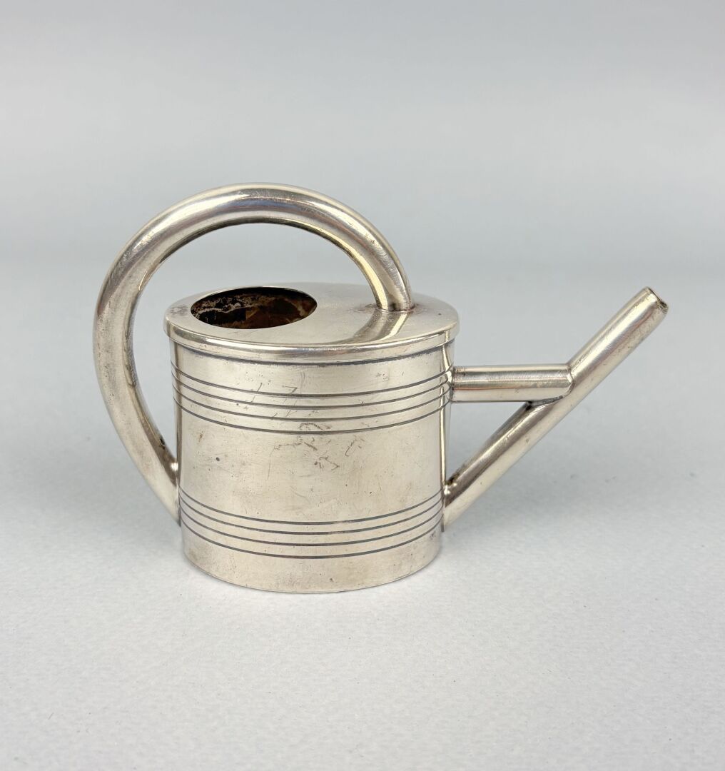 Porte cure-dents en métal argenté figurant un arrosoir Léger choc H : 8.5 cm