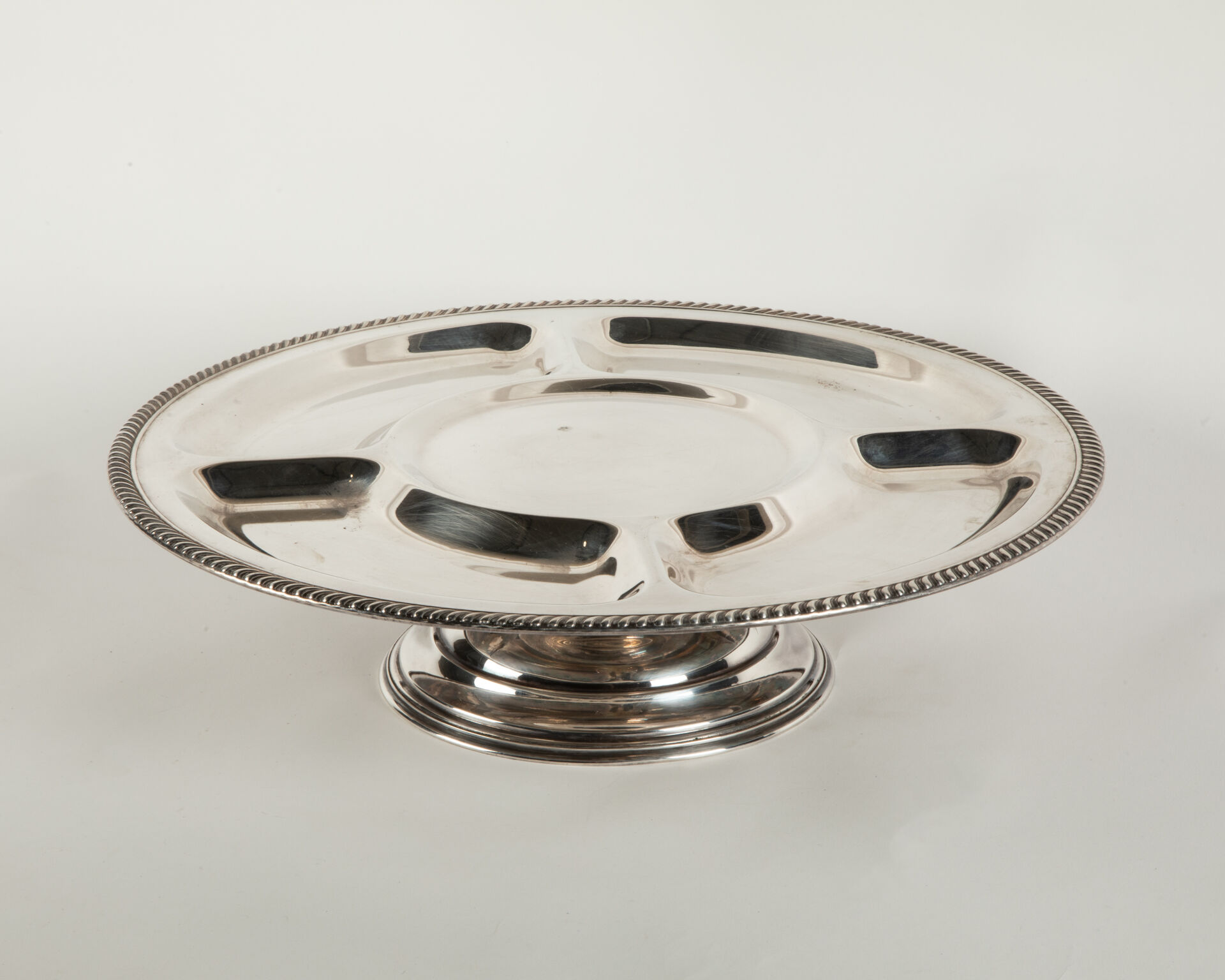 Important serviteur tournant à cinq compartiments sur piédouche tronconique Travail anglais début XX°