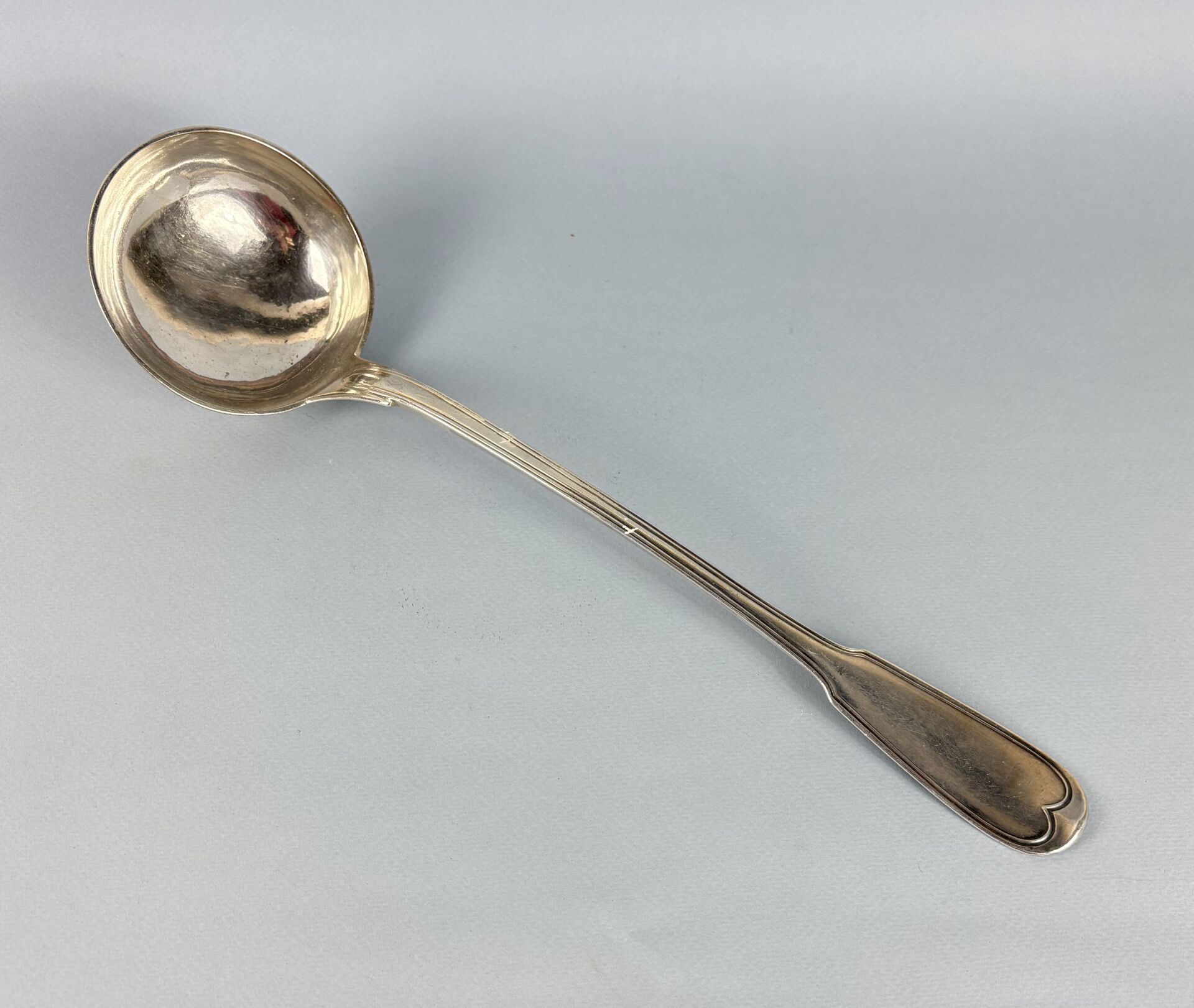 Louche en argent (925 millièmes), poinçon Minerve chiffrée H.K Traces de meuleuse Poids : 258 g