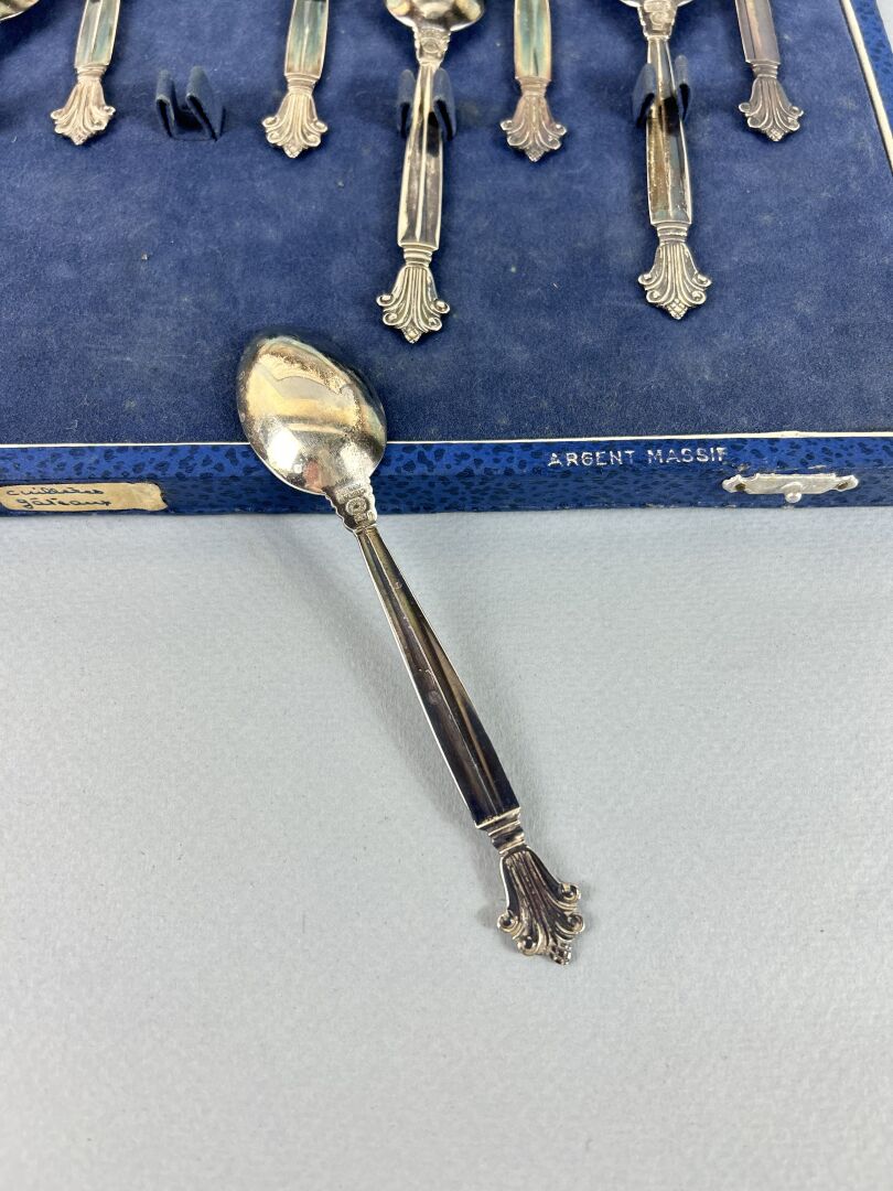 Georg JENSEN Modèle Acanthus - Suite de 12 cuillères à dessert en argent danois Dans leur écrin d'origine. Poids : 223 g