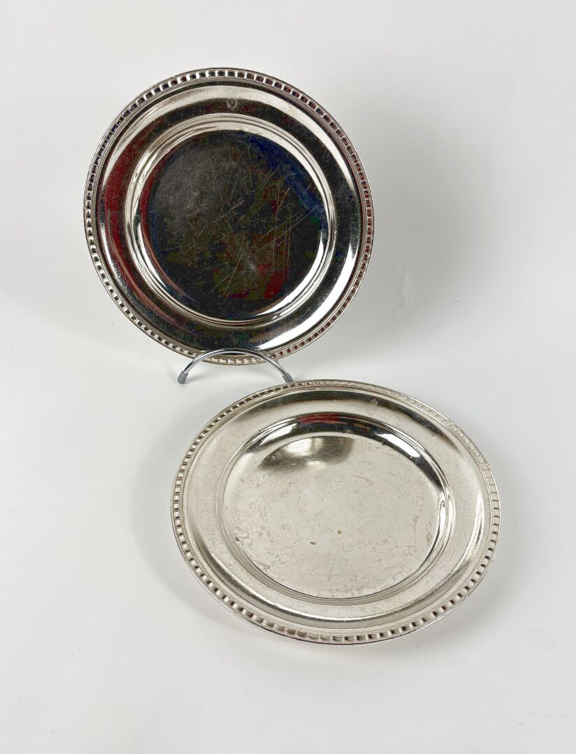 CHRISTOFLE pour l'Hotel Georges V Suite de deux plats ronds en métal argenté frappés du blason de l'établissement Etat d'usage D : 25 cm