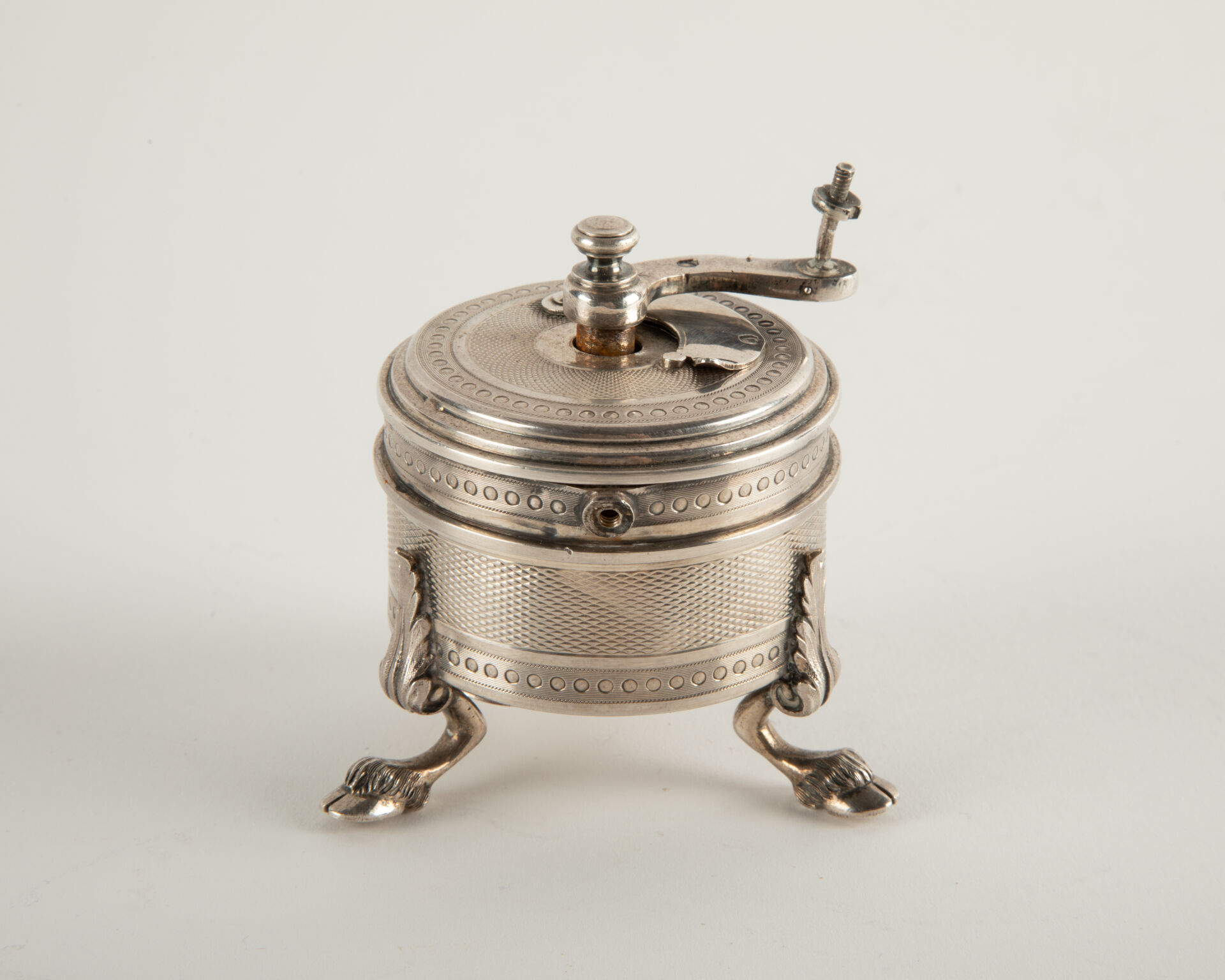 Moulin à poivre de table à décor guilloché en argent (925 millièmes), poinçon Minerve Accidents et manques