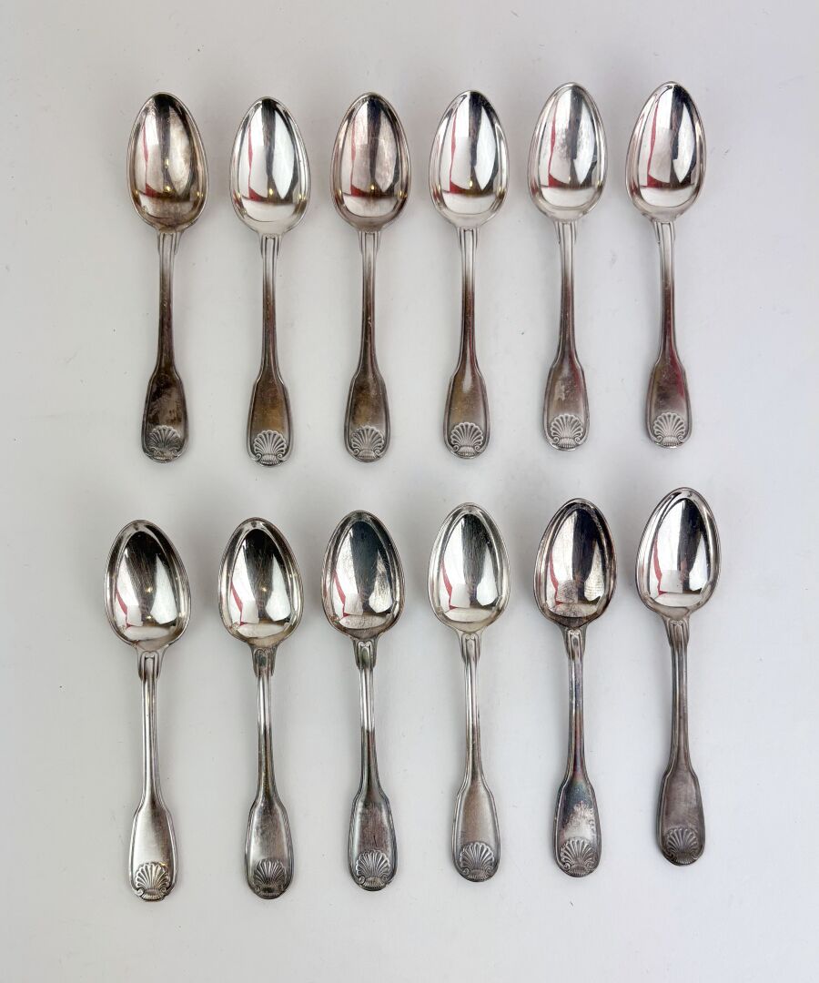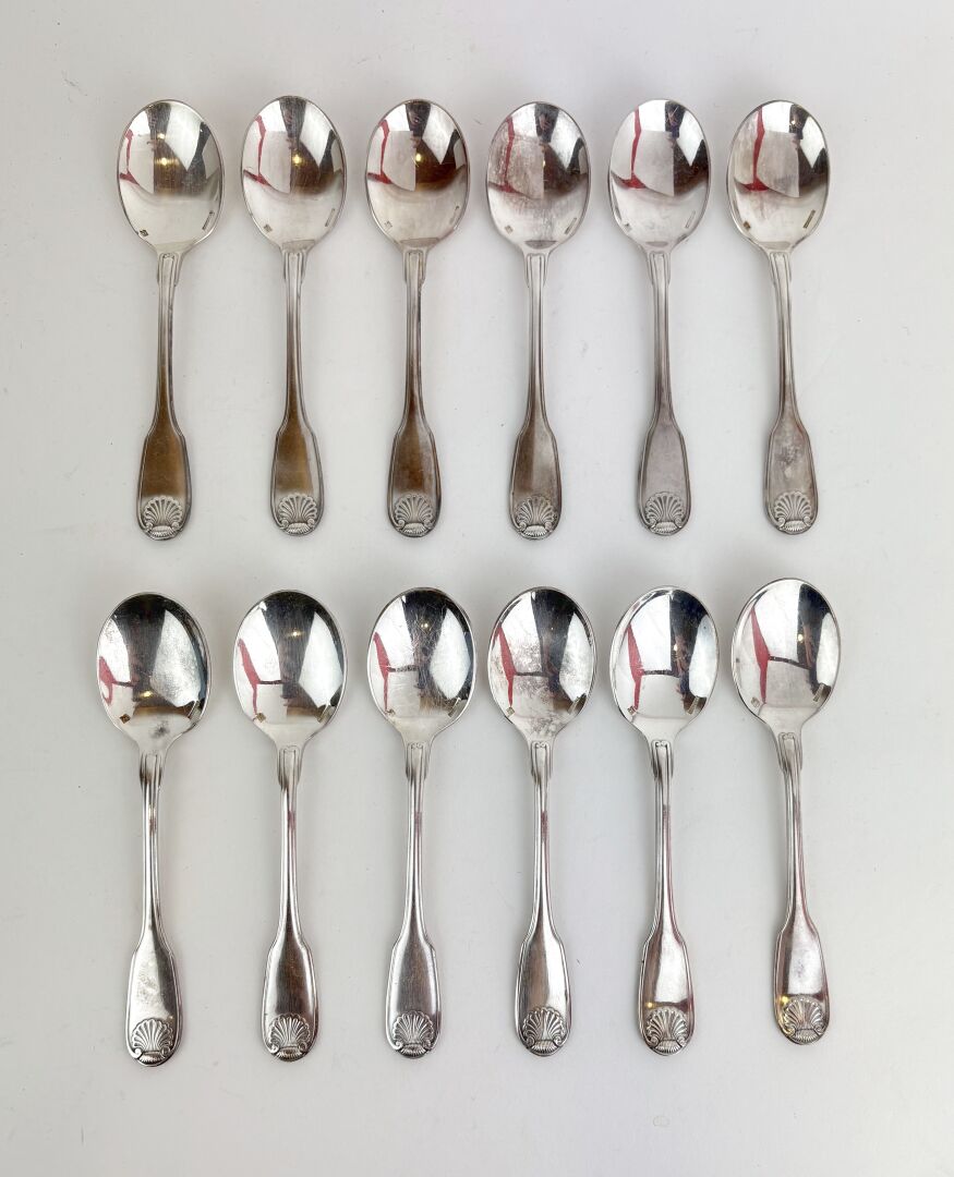 CHRISTOFLE Modèle Vendôme - Suite de 12 cuillères à glace en métal argenté