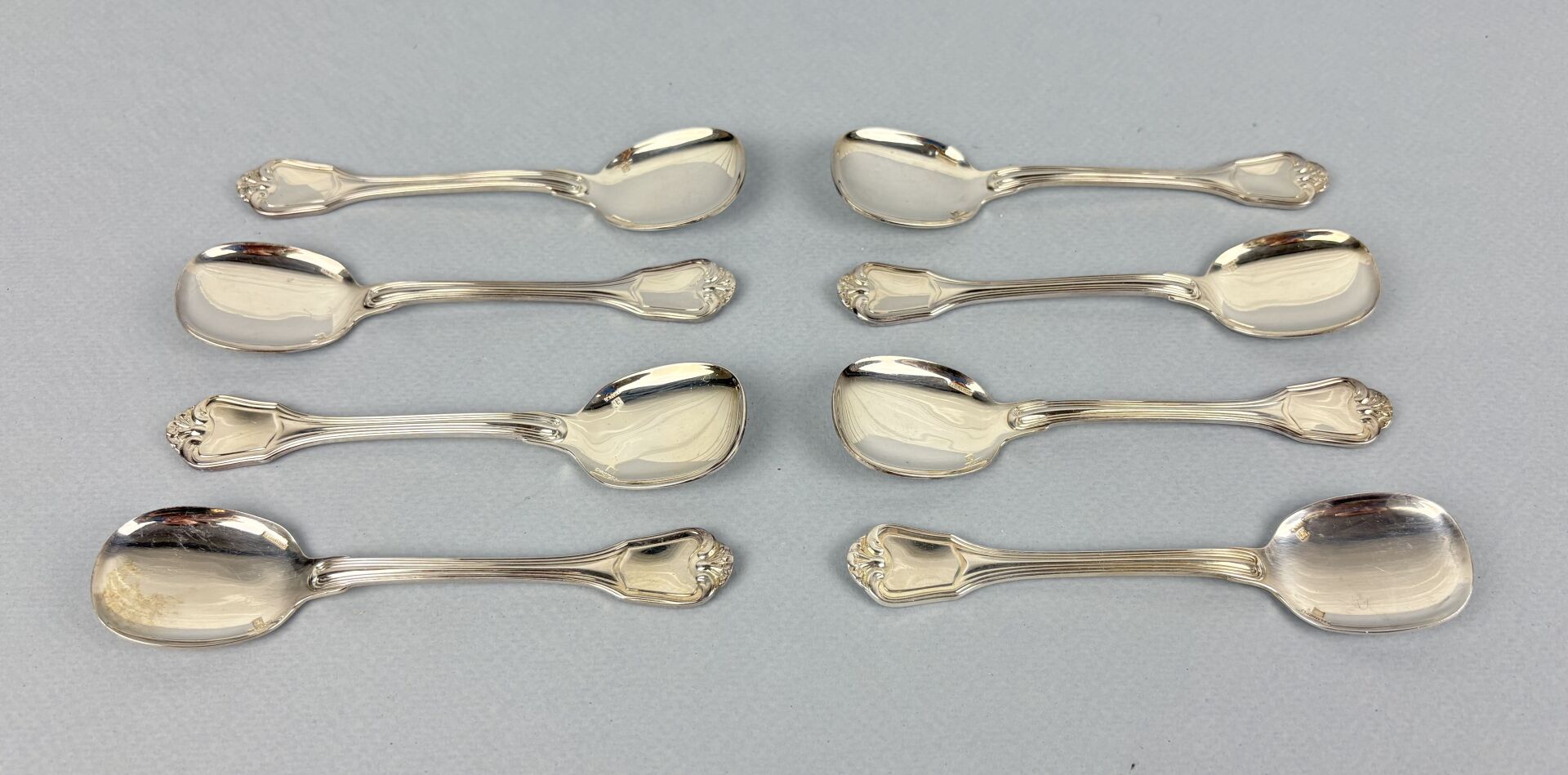 CHRISTOFLE Modèle Port Royal - Suite de huit cuillères à glace en métal argenté