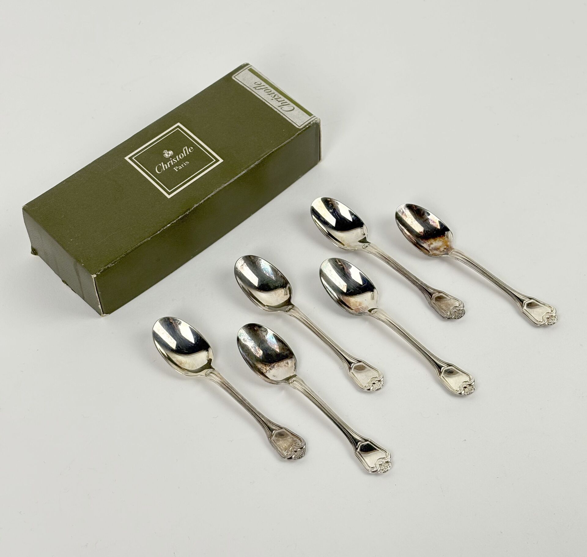 CHRISTOFLE Modèle Port Royal - Suite de six cuillères à moka en métal argenté Dans une boite