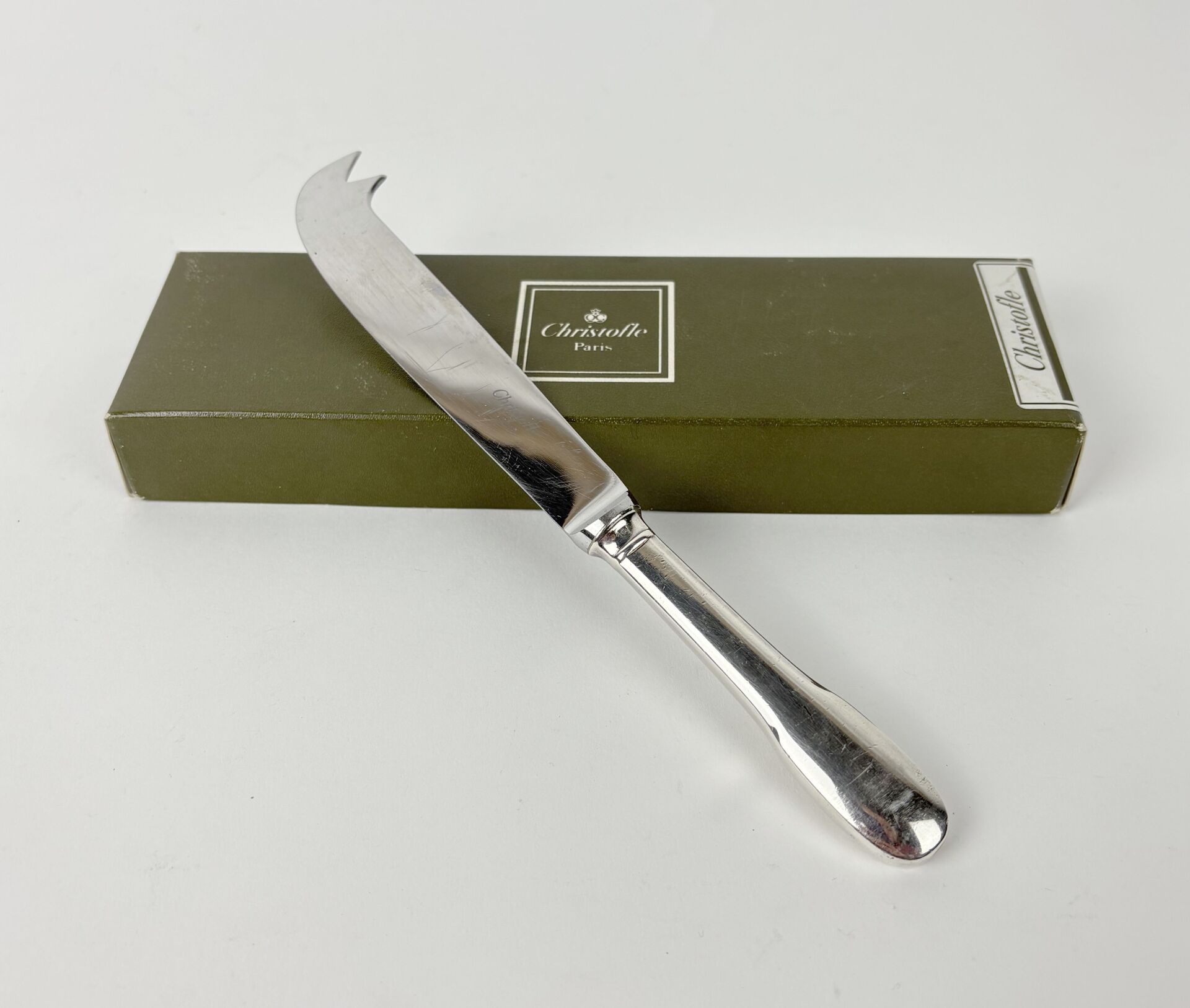 CHRISTOFLE Modèle Cluny - Couteau à fromage en métal argenté, lame acier Dans une boite