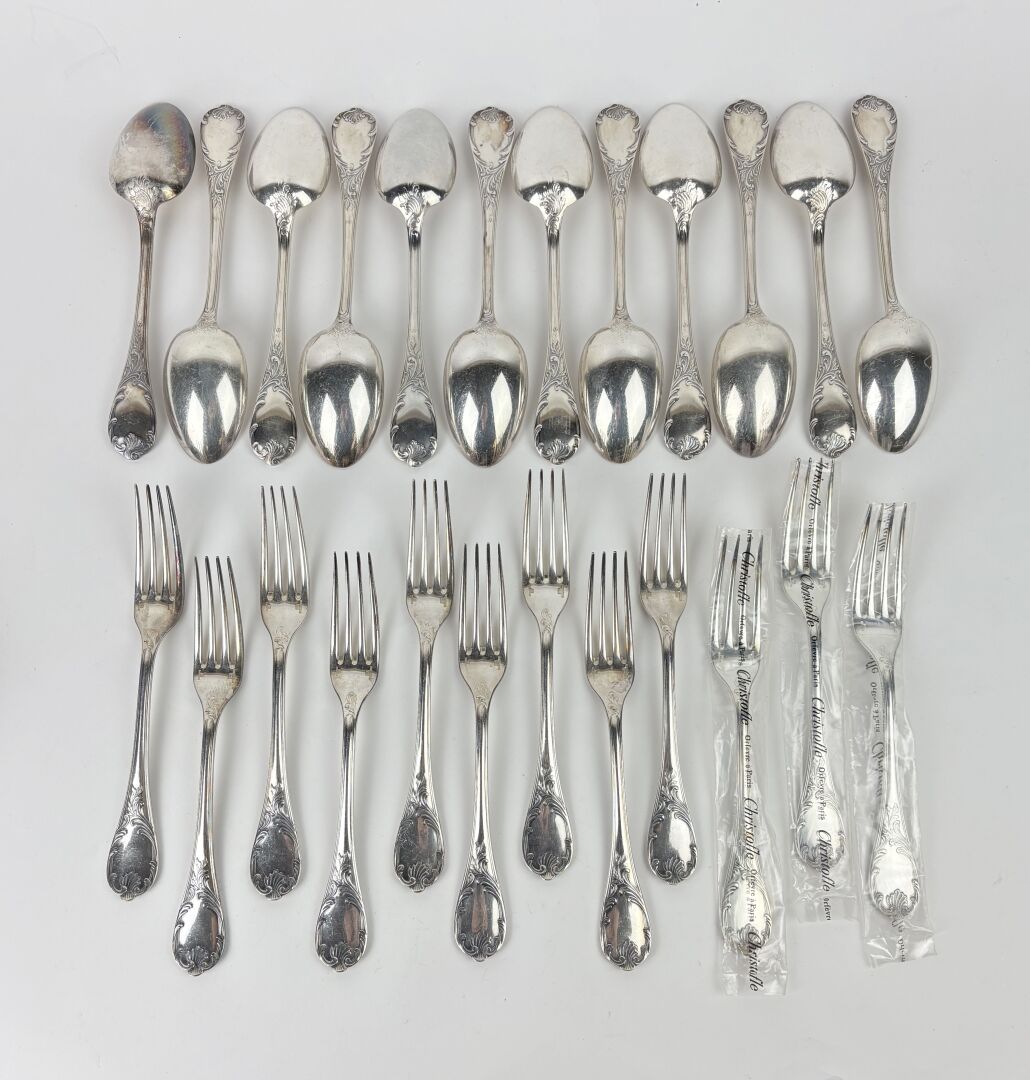CHRISTOFLE Modèle Marly - Suite de douze couverts de table en métal argenté Certains sous blister