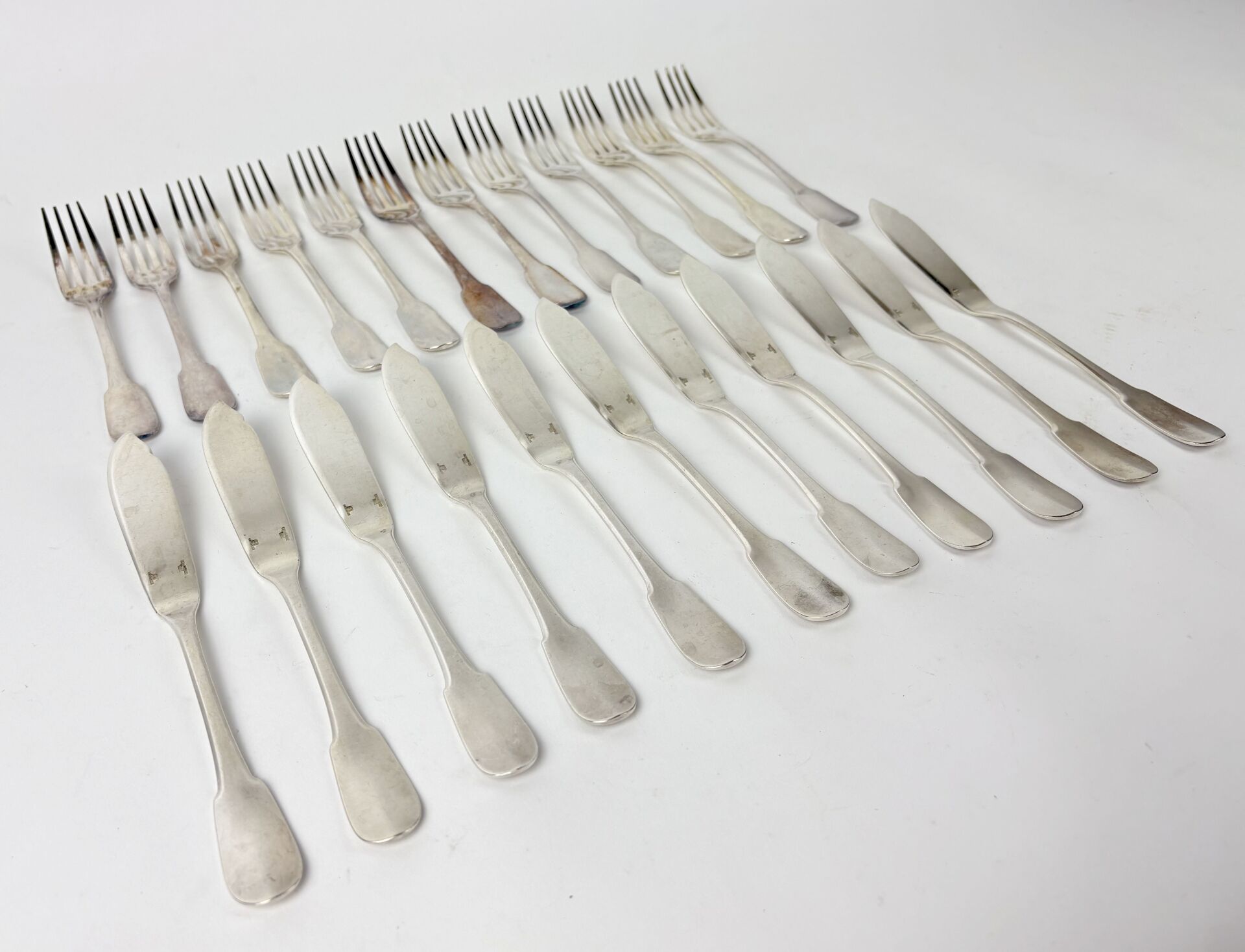 CHRISTOFLE Modèle Cluny - Suite de onze couverts à poisson en métal argenté Dans une boite