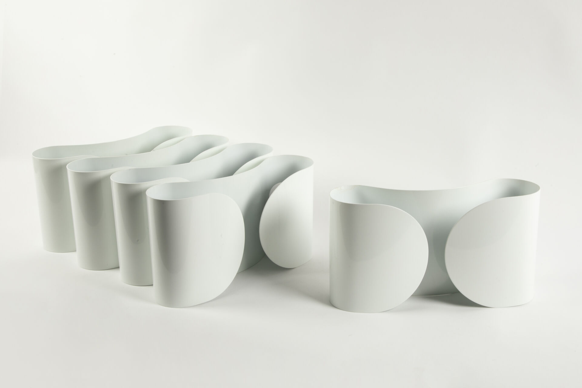 Tobia SCARPA (1935) - Édition FLOS Modèle Foglio - Suite de 5 appliques ruban en métal cintré laqué blanc H : 21 - L : 38 - P : 11.5 cm