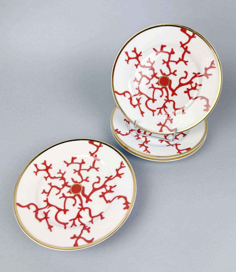 Alberto PINTO (1945-2012) pour RAYNAUD, Limoges Modèle Cristobal - Suite de six assiettes en porcelaine à décor de corail rehaussé d'or D : 19 cm
