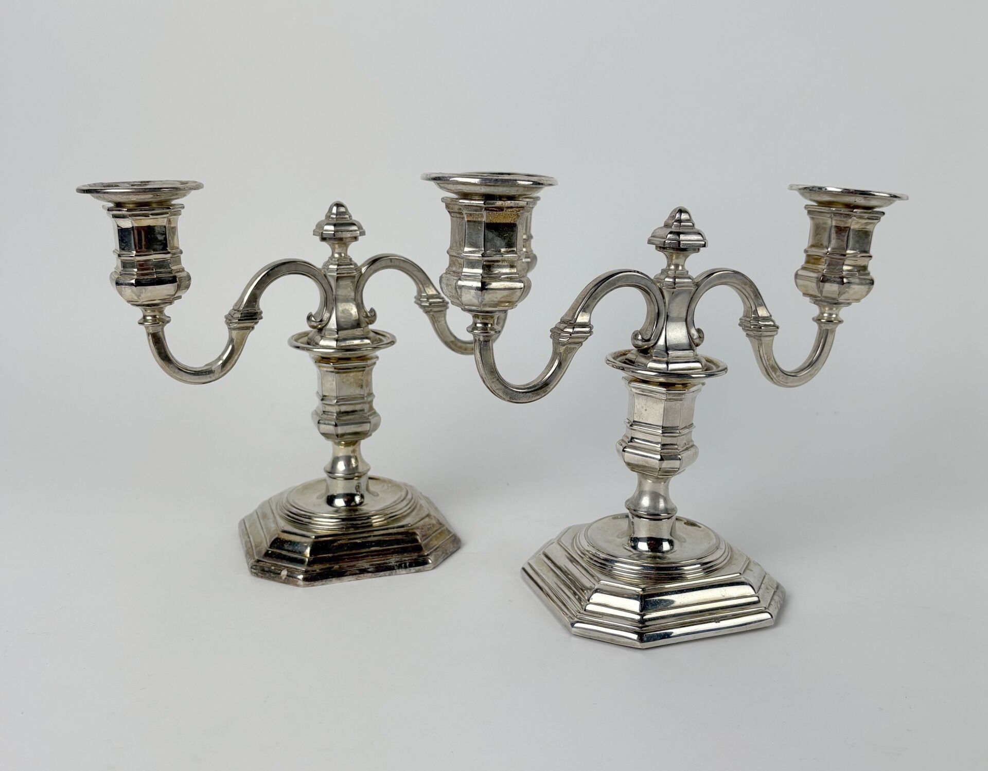 Paire de flambeaux pouvant former candélabre en métal argenté à pans coupés H : 18 cm